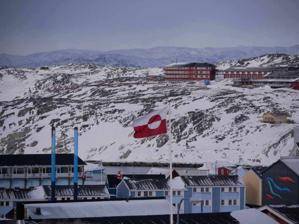 Det Grønlandske flag i den kolde vind.