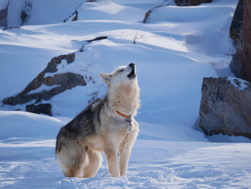 Tilsneet slædehund.