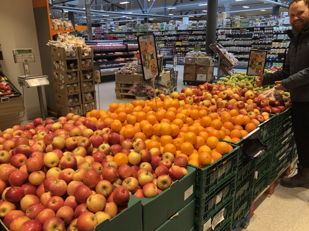 Der kommer nu skib med varer næsten hver uge, det kan ses i frugtafdelingen.