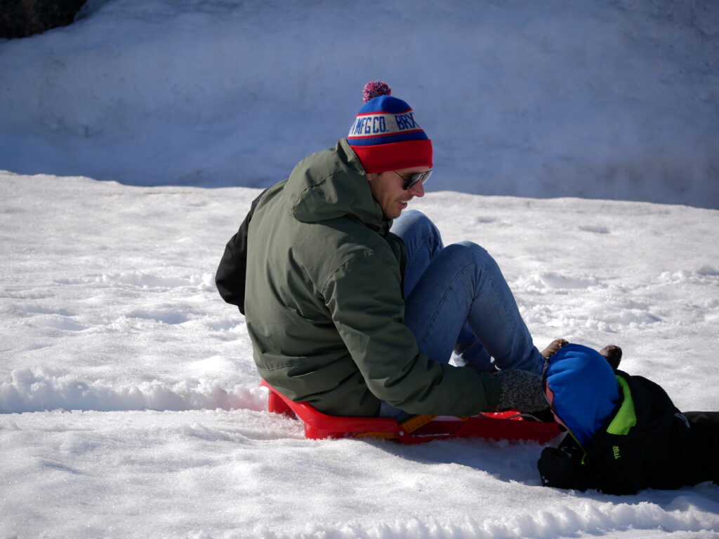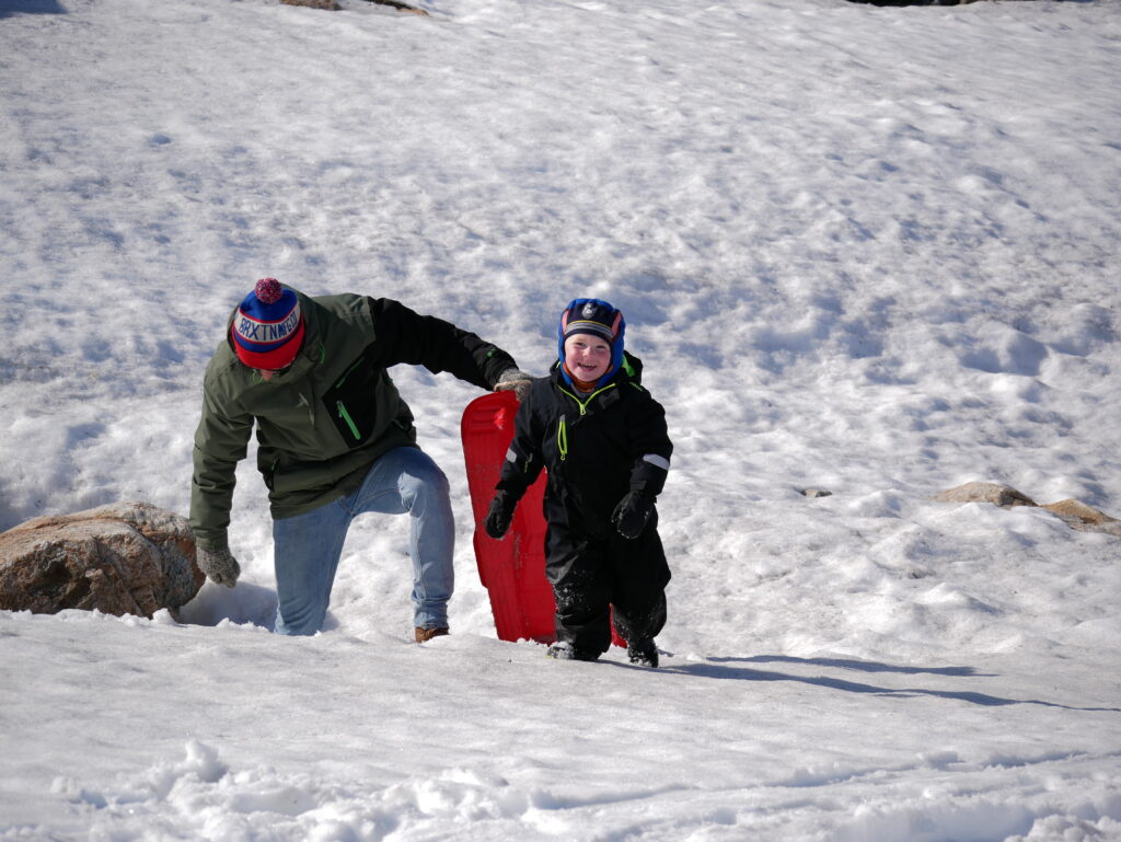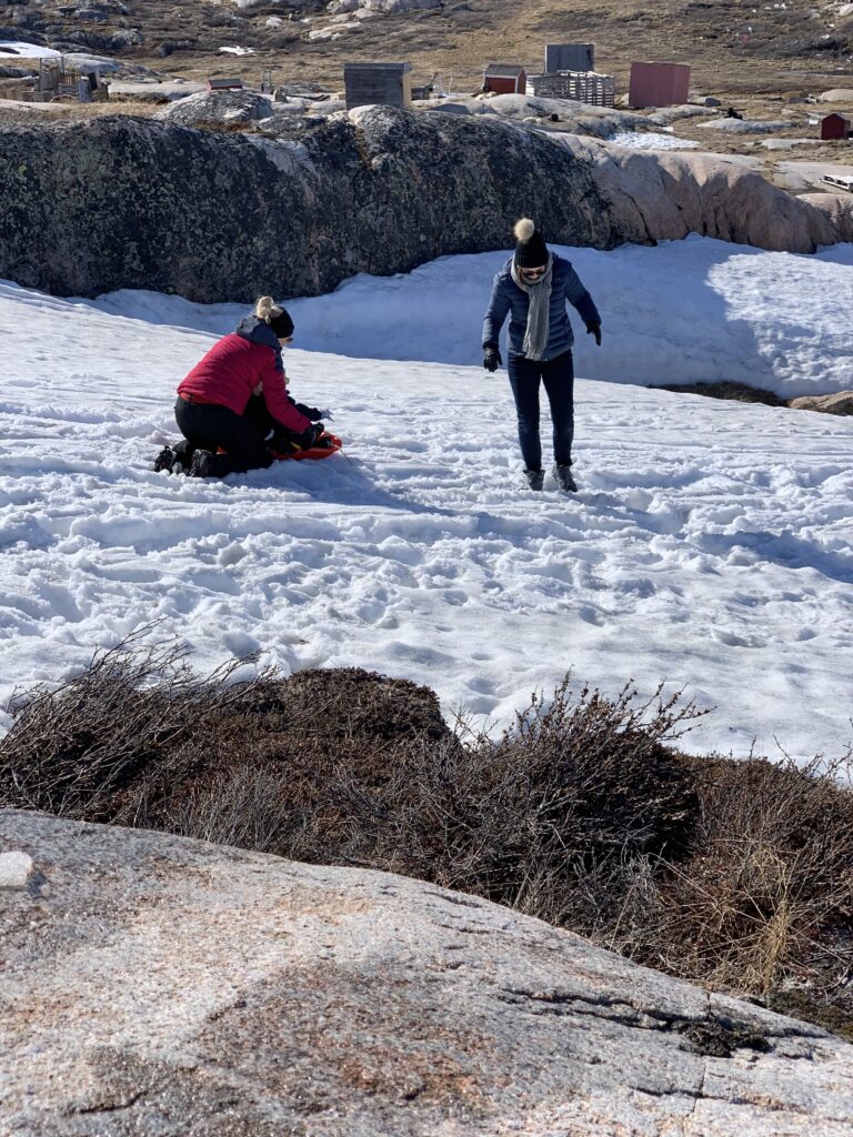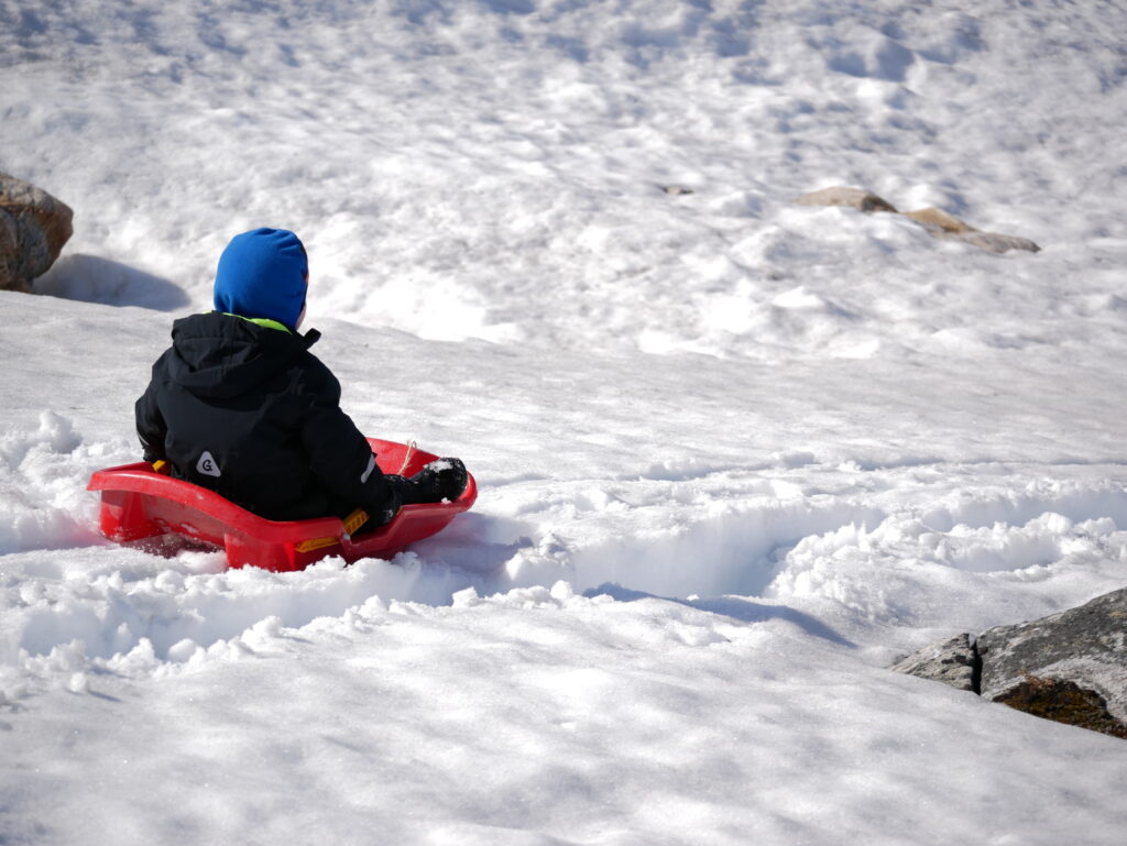 Det kan stadig lade sig gøre at finde lidt sne og kælke i.