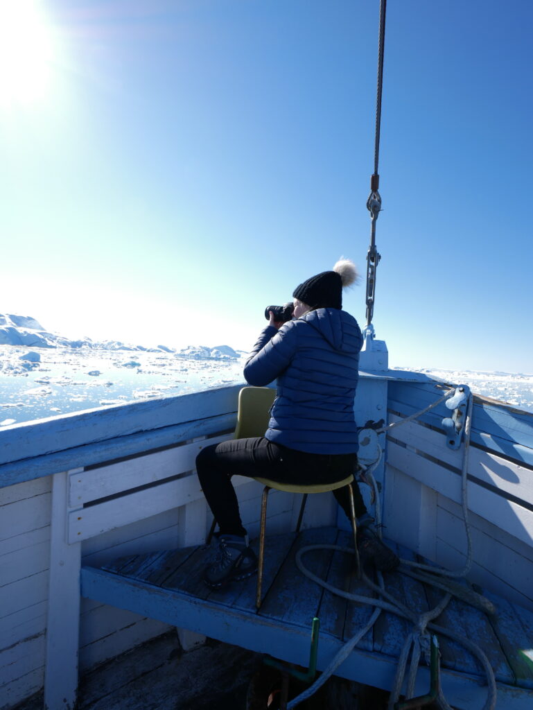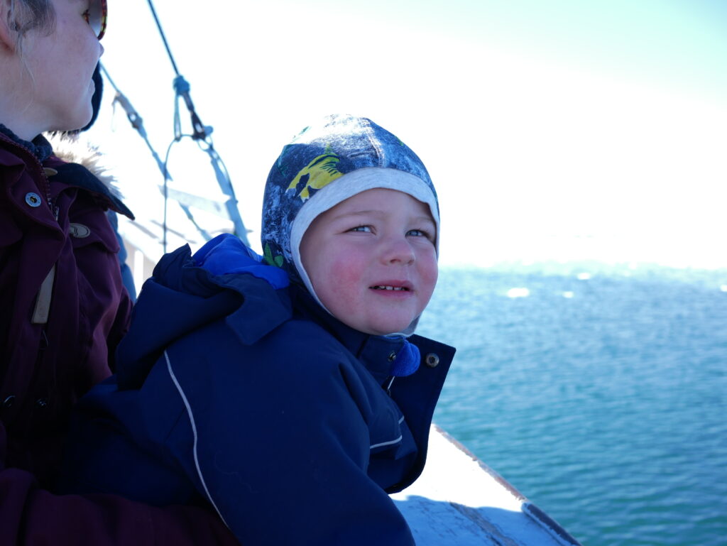 Sidse og Birk nyder turen tilbage mod Ilulissat. Tak for en go dag.