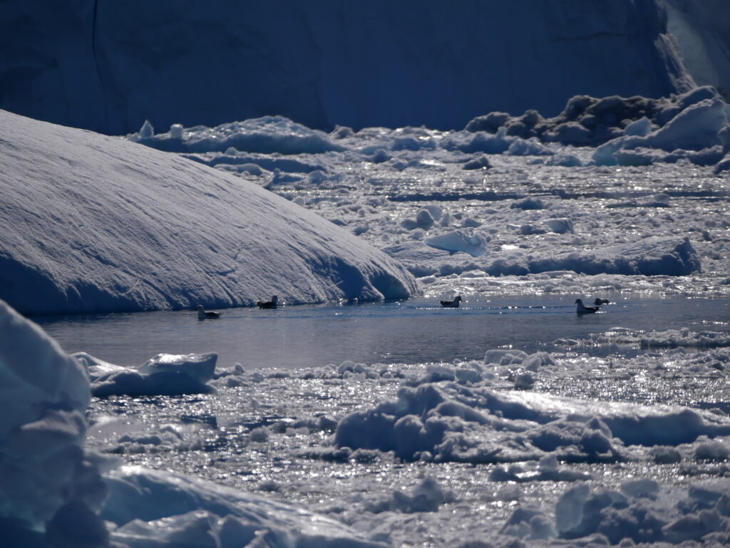 Der er masser af fugle mellem isbjergene.