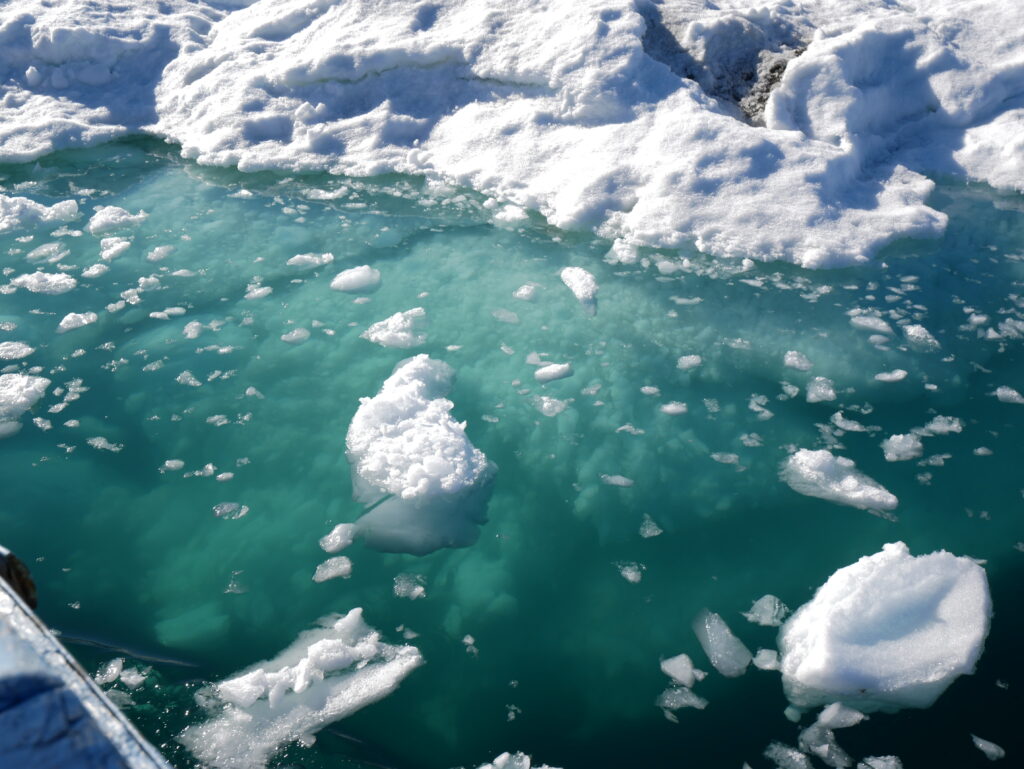Isen bliver helt grøn at se på under overfladen.