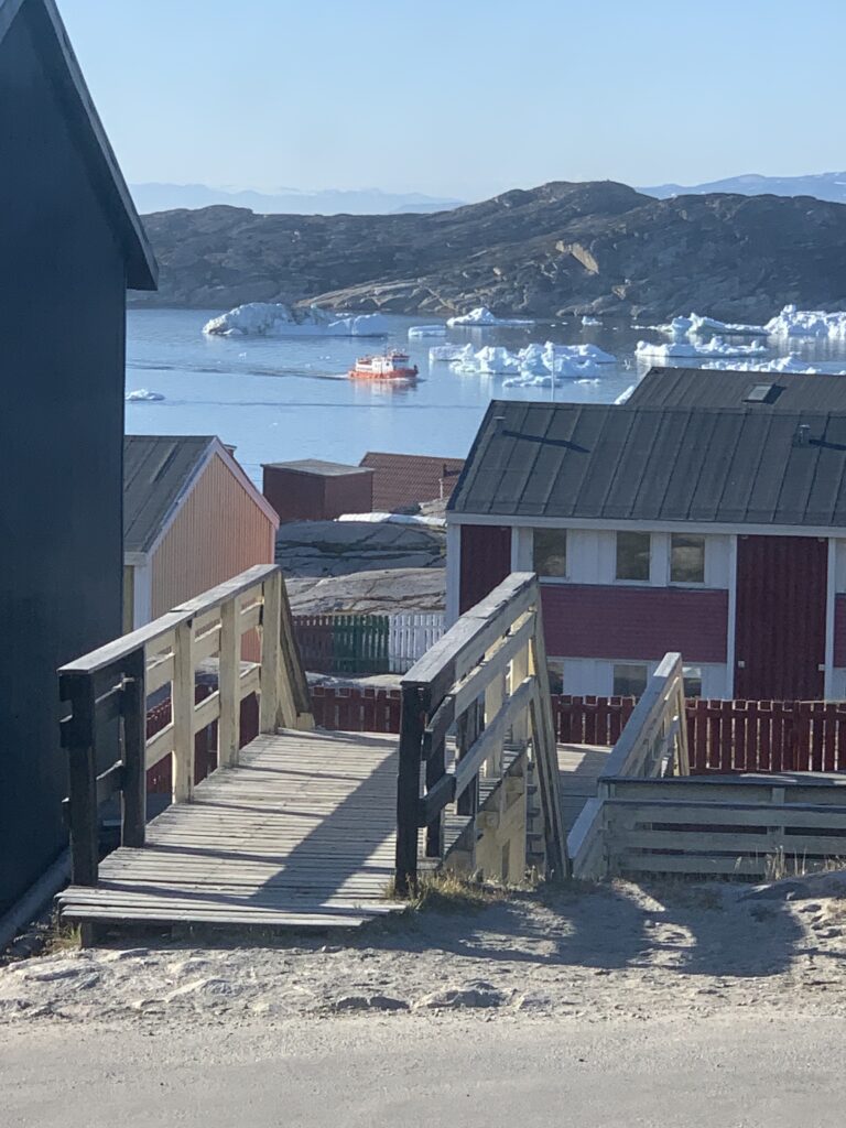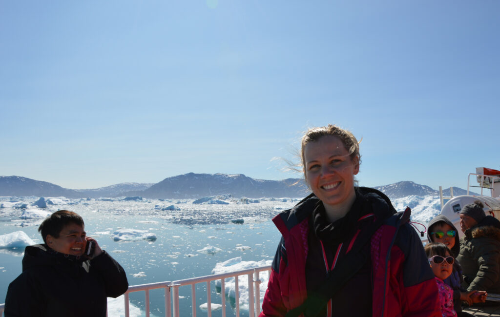 Line kommer hjem til Ilulissat efter bygdetur.