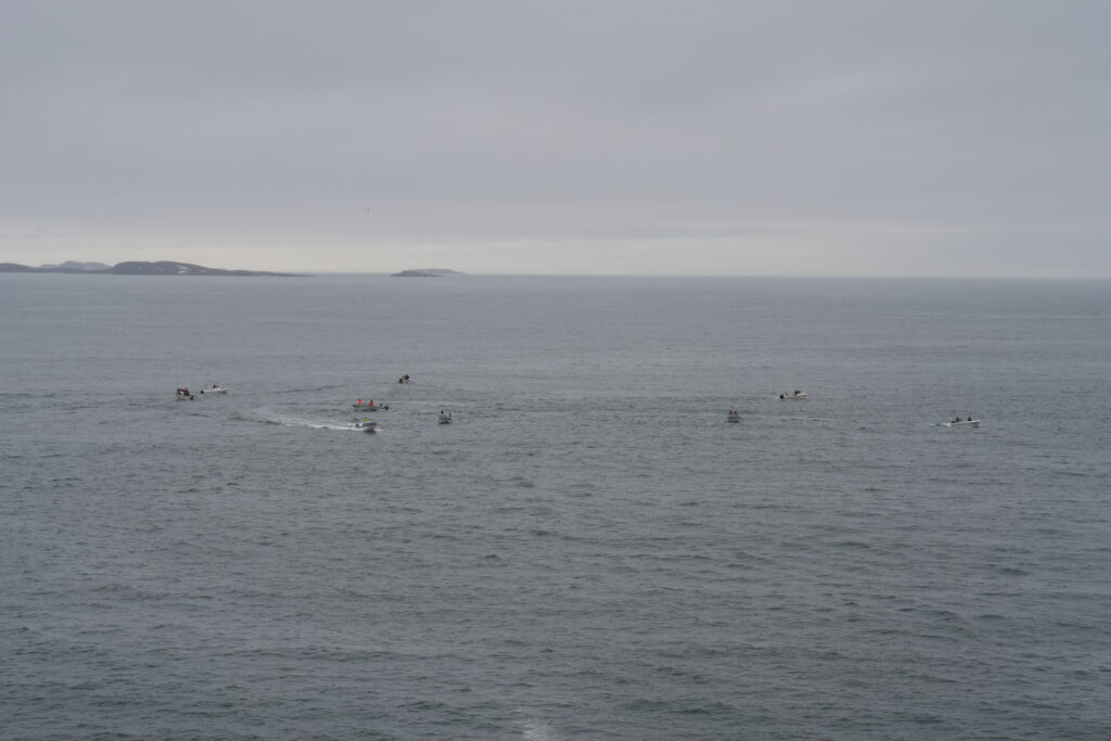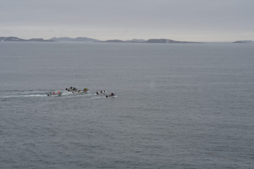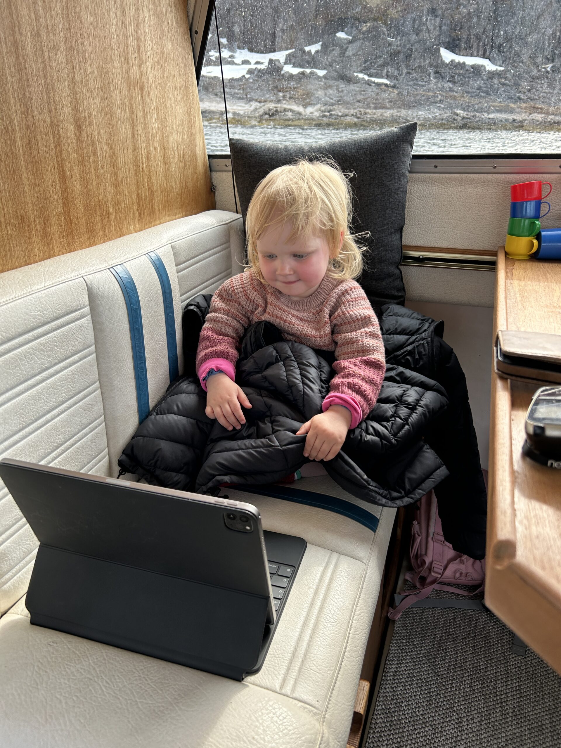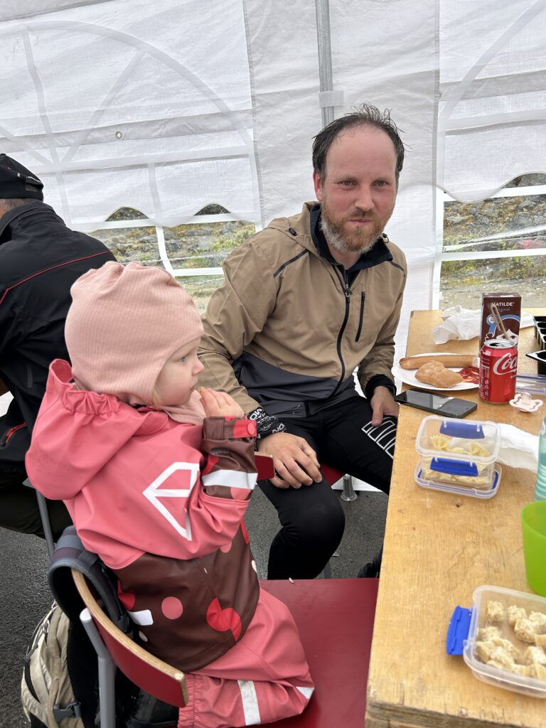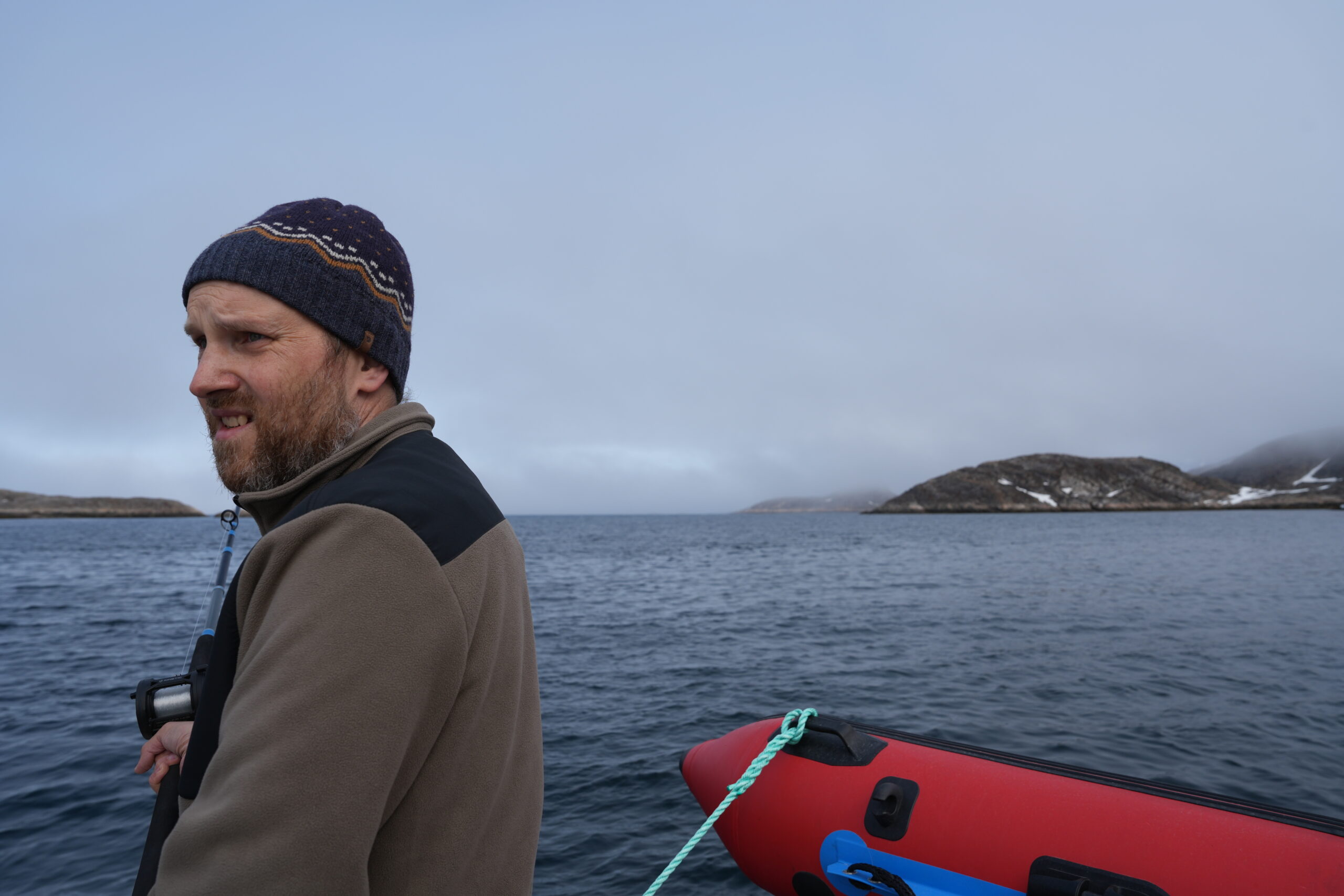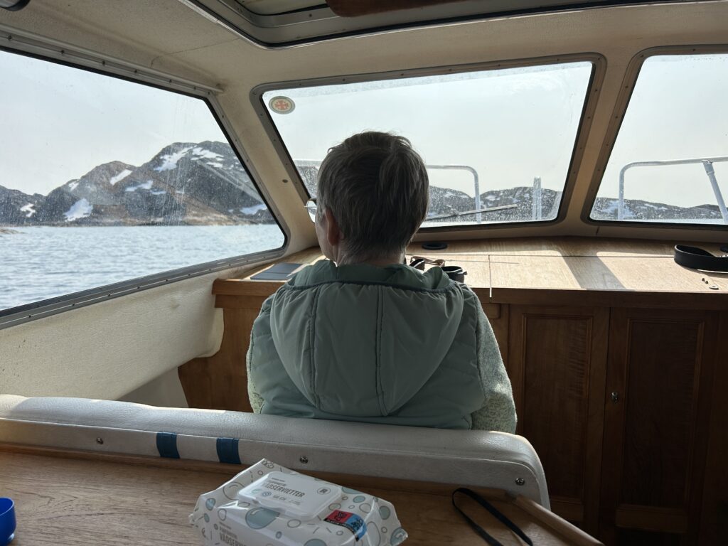 Fisketur.Så er der bid.Alex venter og venter.Bedste skulle også prøve, men……Så kom tågen.My fik en lur på båden.Vigga hyggede med Gurli Gris.Og hygger med mor.Bedste nyder udsigten.Line fangede en havkat.54 cm.Havkatten har vilde tænder.Line fik selv lov til at filetere.Grønlandsk tapas.Pukkelhval hopper ud af vandet.My vil gerne læse.Og Vigga vil gerne danse.Vi siger farvel til Bedste.Tak for denne gang.Farvel mysser.Bedste venter på Taxa.Vigga bygger duplo-tog.Vigga skubber rundt med My, hun synes det er vildt sjovt.Så kom der regn og kæmpe vandpytter.Stormvejr.Så mærkede vi vores første jordskælv.Der er kommet nyt legetøj i hallen.De jagter en hval.Men fik den desværre ikke.Brugseni-løb med gode præmier.Og hygge.Der var endnu større vandpytter.På fisketur igen, her en Ulk på krogen.Line og Vigga får vind i håret.Alex fangede en havkat, 64 cm.