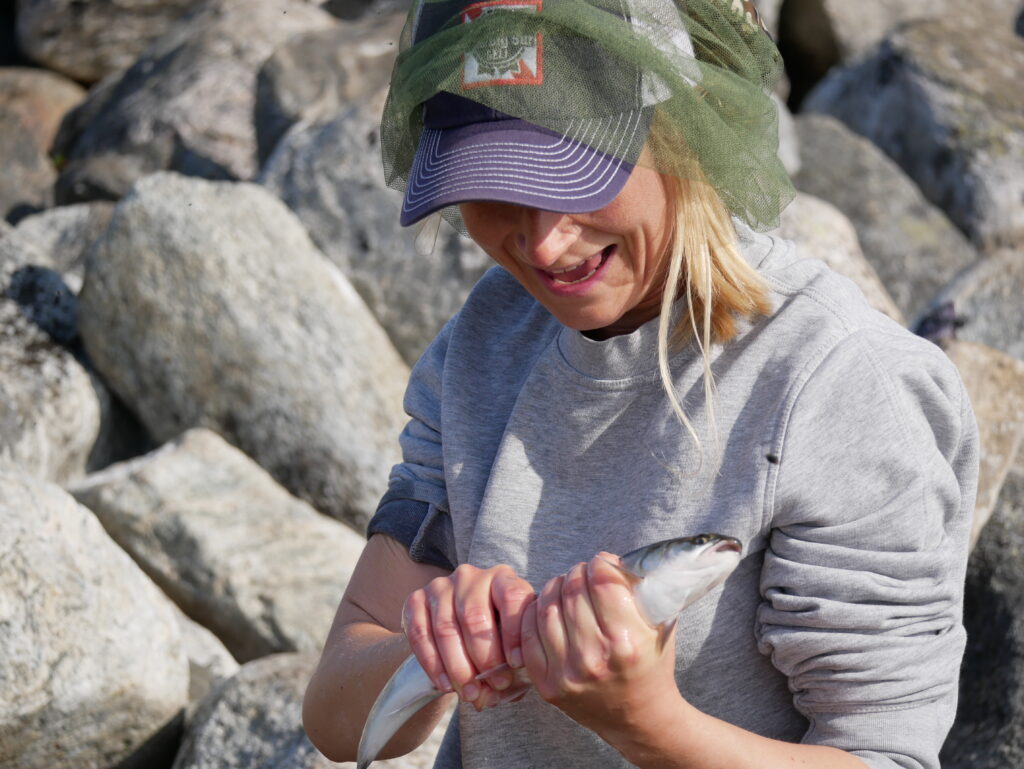 Man skal holde godt fast, for fisken er glat.