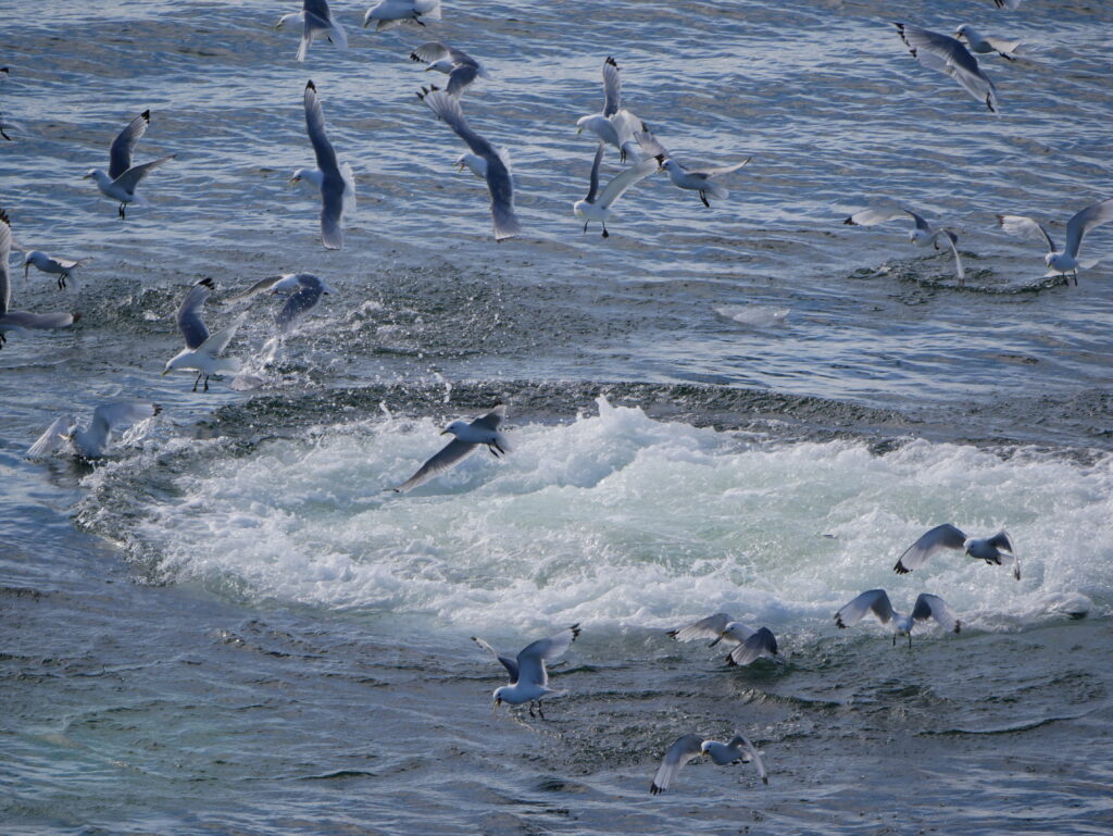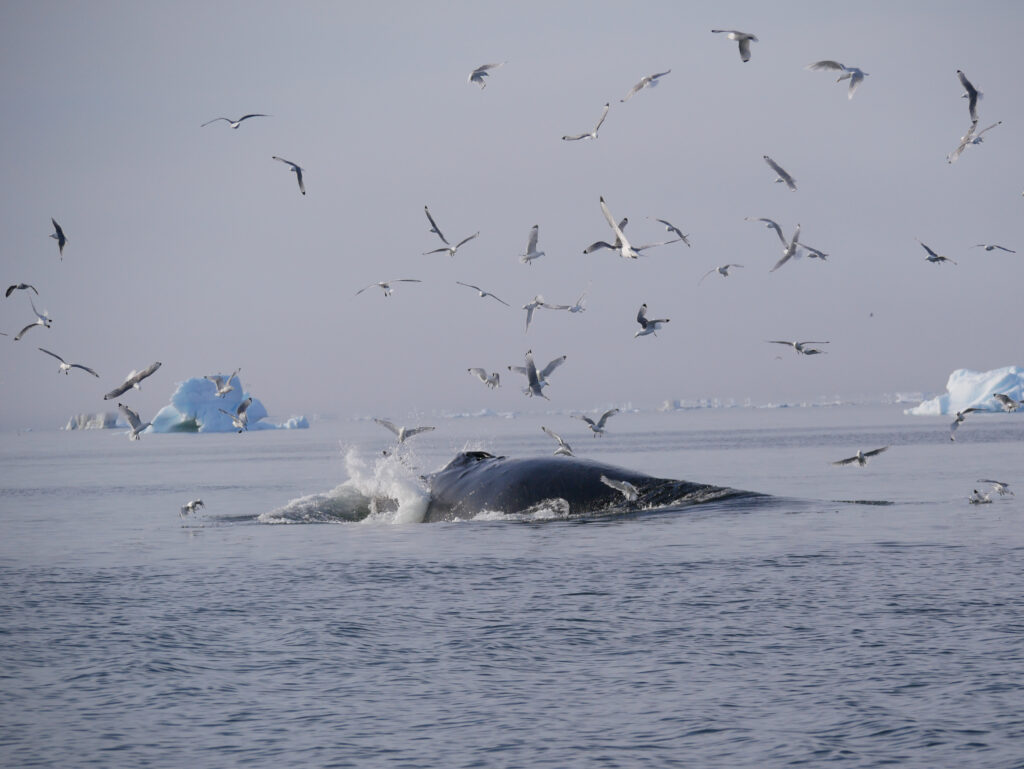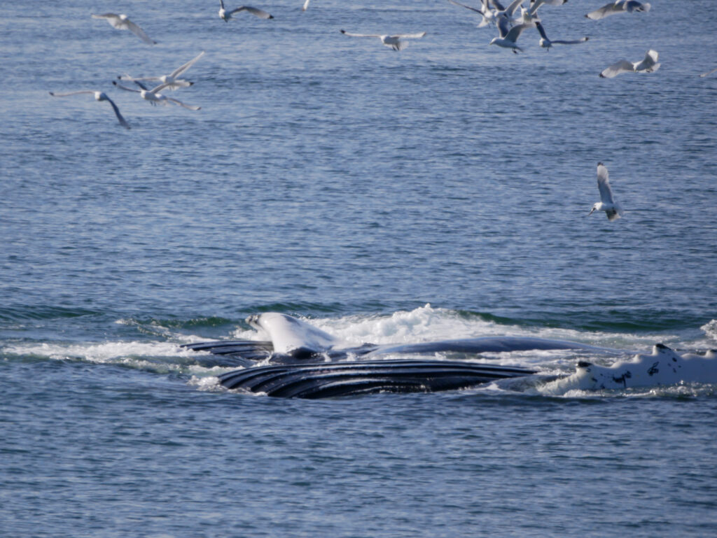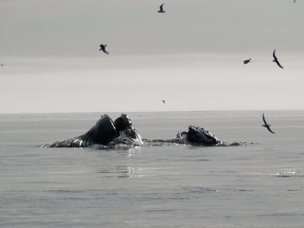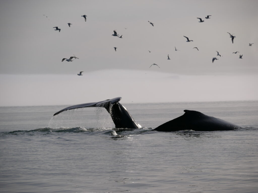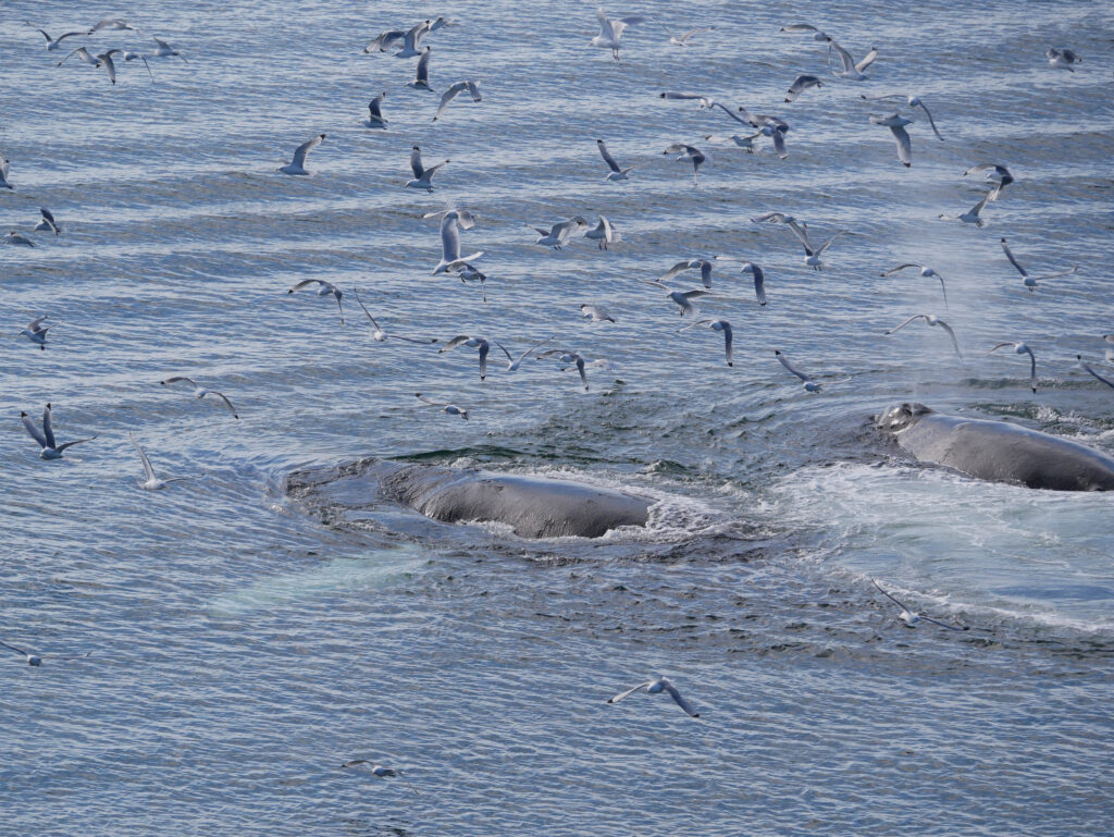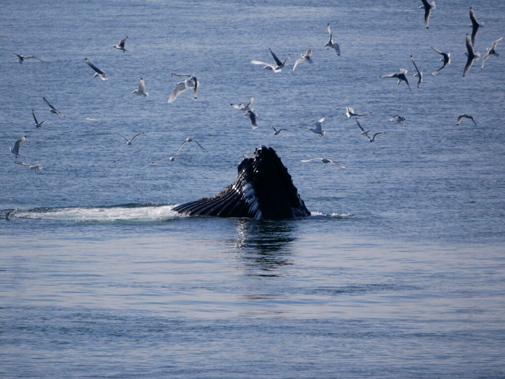 Man skal holde øje med mågerne for at se, hvor hvalerne kommer op næste gang.