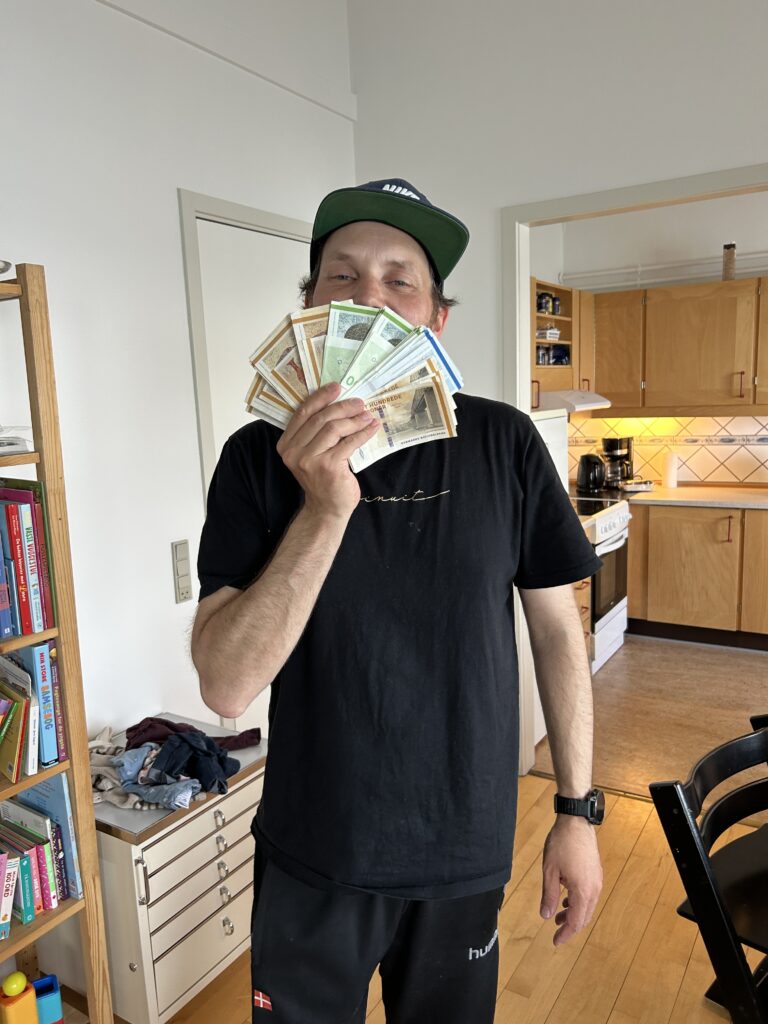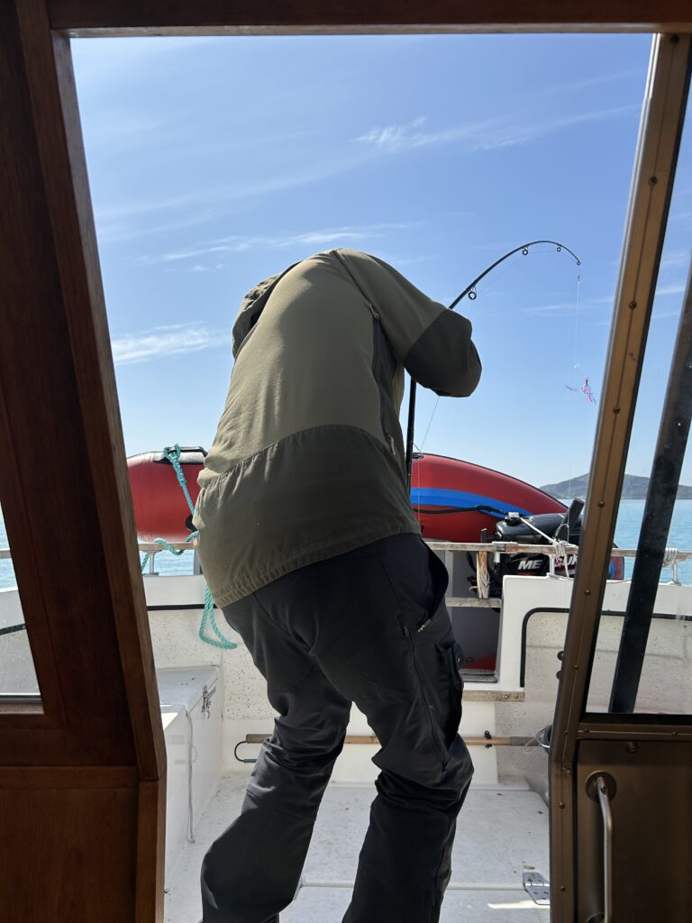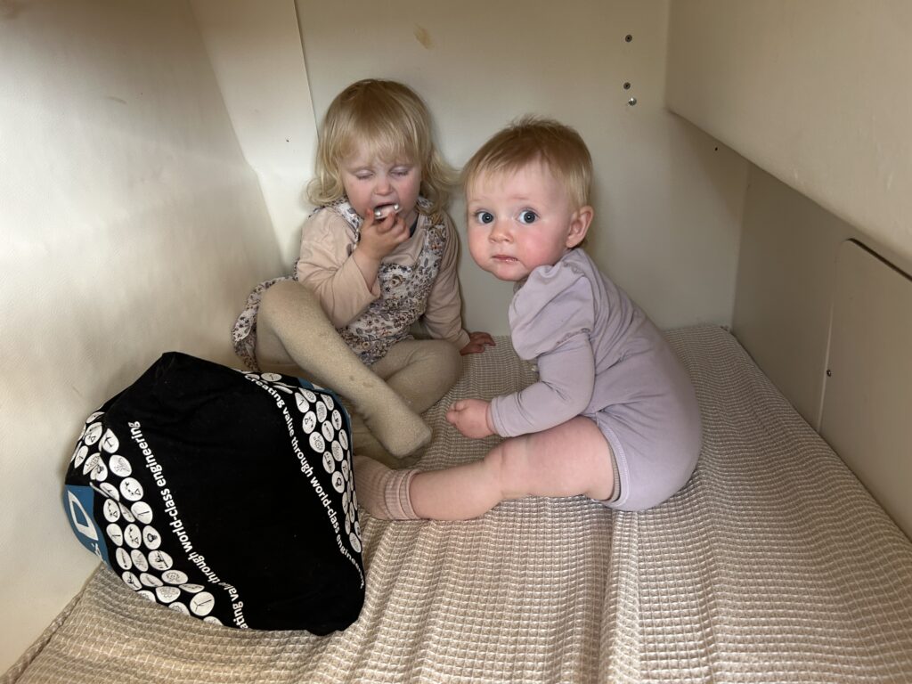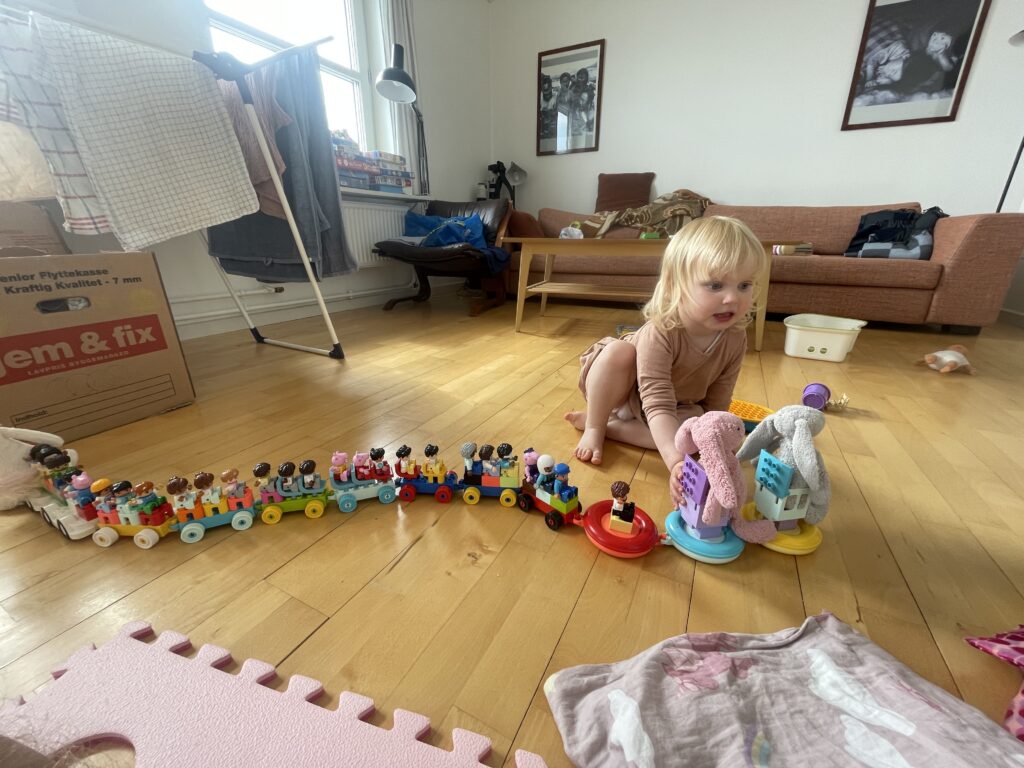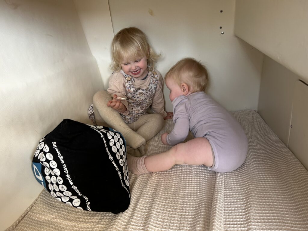 Fælles bad med masser af skum.Endnu et krydstogtskib.Vigga er vild med at lave perler.Vigga bygger endnu et laaaangt tog.My vil også lege.Alex fik sig en stor torsk på dagens sejltur.Torsdag eftermiddag ville vi ud og fange torsk – vi kom lige forbi en hval.Alex gør fiskestængerne klar.Vigga maler.Og Line kigger på.Så fandt vi torskene – Alex fanger to på en gang.Line fanger en flot arktisk ulk.Line tog lige 3 torsk på en gang.My vågnede da vi skulle til at hjem.Og så skulle der leges.Vi laver altså ikke ballade.Det er min sut My!Dagens fangst blev 8 torsk på til sammen 10,4 kg.Der blev skåret til 16 fileter.Og pakket ordentligt ned, så det kan sendes til Danmark.My øver sig i at stå selv – her er hun oppe i 3 sekunder.Fredag drev tågen ud og ind, hvilket gav et flot landskab.Og nogle flotte farver i havet.My leger lidt i sandkassen.Vigga er også med.Hey, jeg er lige her!Hej hej.Vigga gynger.Og leger i legetårnet.My på opdagelse.Flot udsigt fra legepladsen med tåge over havet.Pakket og klar til den sidste sejltur – snøft!Alle på vej ombord.Vi får os lige en lille formiddagskage.Alex styrer som altid.Skal bare lige hen til Hjertefjeldet.Vigga putter og maler.Og lægger puslespil.Første fisk er på.Endnu en fin torsk.Vigga var lige ude og se det hele gik, som det skulle.Der var flot tåge omkring fjeld toppene først på dagen.Lidt udsigt, mens der fiskes bag på båden.Udsigt mod nord.Hjertefjeldet.Så er My vågen.Og der er frokost til alle.Så er det Viggas tur til en lur.Alex renser de 5 torsk, vi fangede.My leger.Og gemmer sig. Mens Vigga sover.Så går det hjem af for sidste gang.Vi tog lige en tur rundt om byen.Hotellet til venstre og kirken i midten.Mere af Maniitsoq.Perfekt sejl vejr.“Vores” ende af byen.Kirke bugten.Selfie foran båden.Vi takker for den sidste sejltur.Dagens fangst skal også laves til fileterSmuk tåge søndag morgen.Et par ravneTågen driver stille væk.Så er båden afleveret til dens nye ejere.Sidste farvel til båden, da den sejler til Nuuk.Vores bådtrailer blev solgt for kolde kontanter.Så begynder nedpakningen.