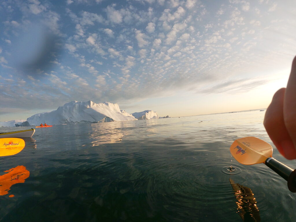 Mens solen gik ned padlede vi tilbage mod Ilulissat.