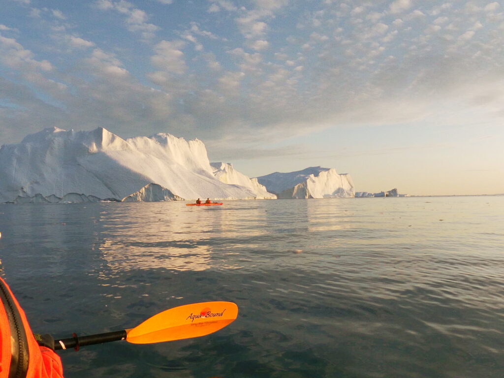 Vi padler mod de store isbjerge.