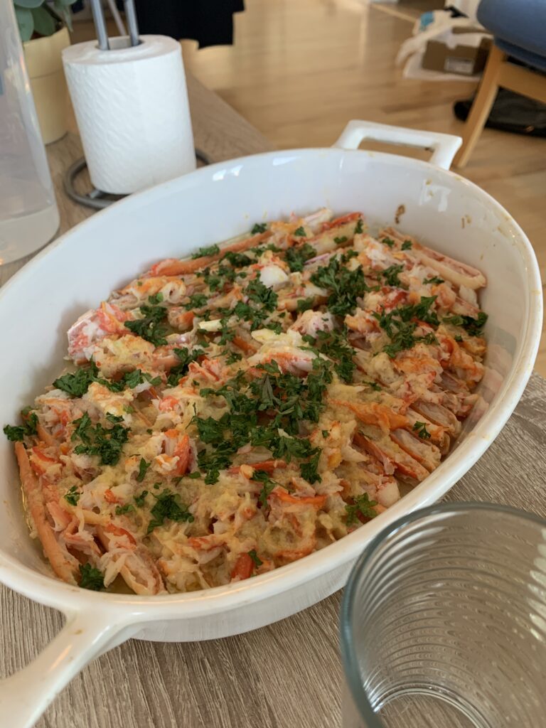 Til aften stod den på vores sidste snekrabber, denne gang gratinerede.