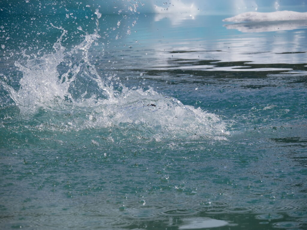 Den lander med et kæmpe plask.