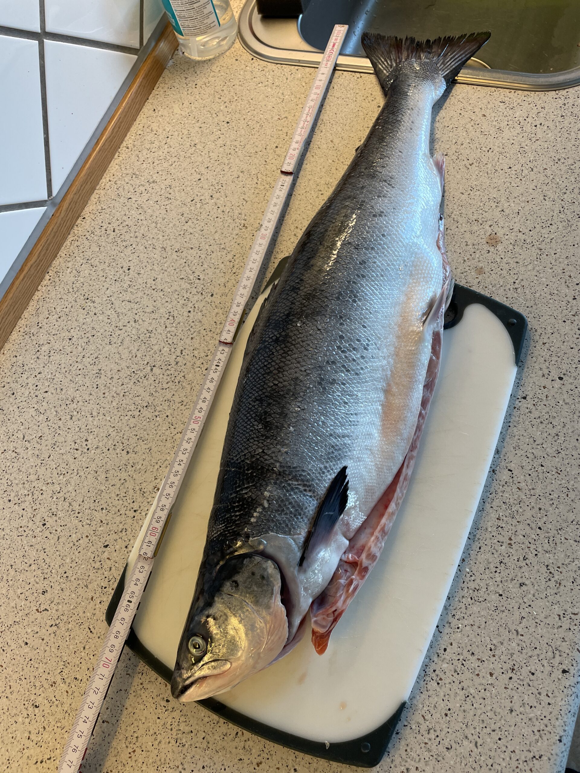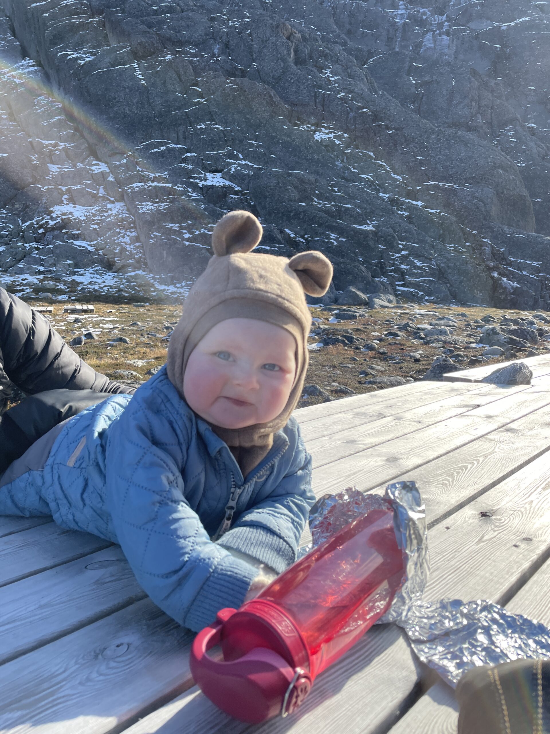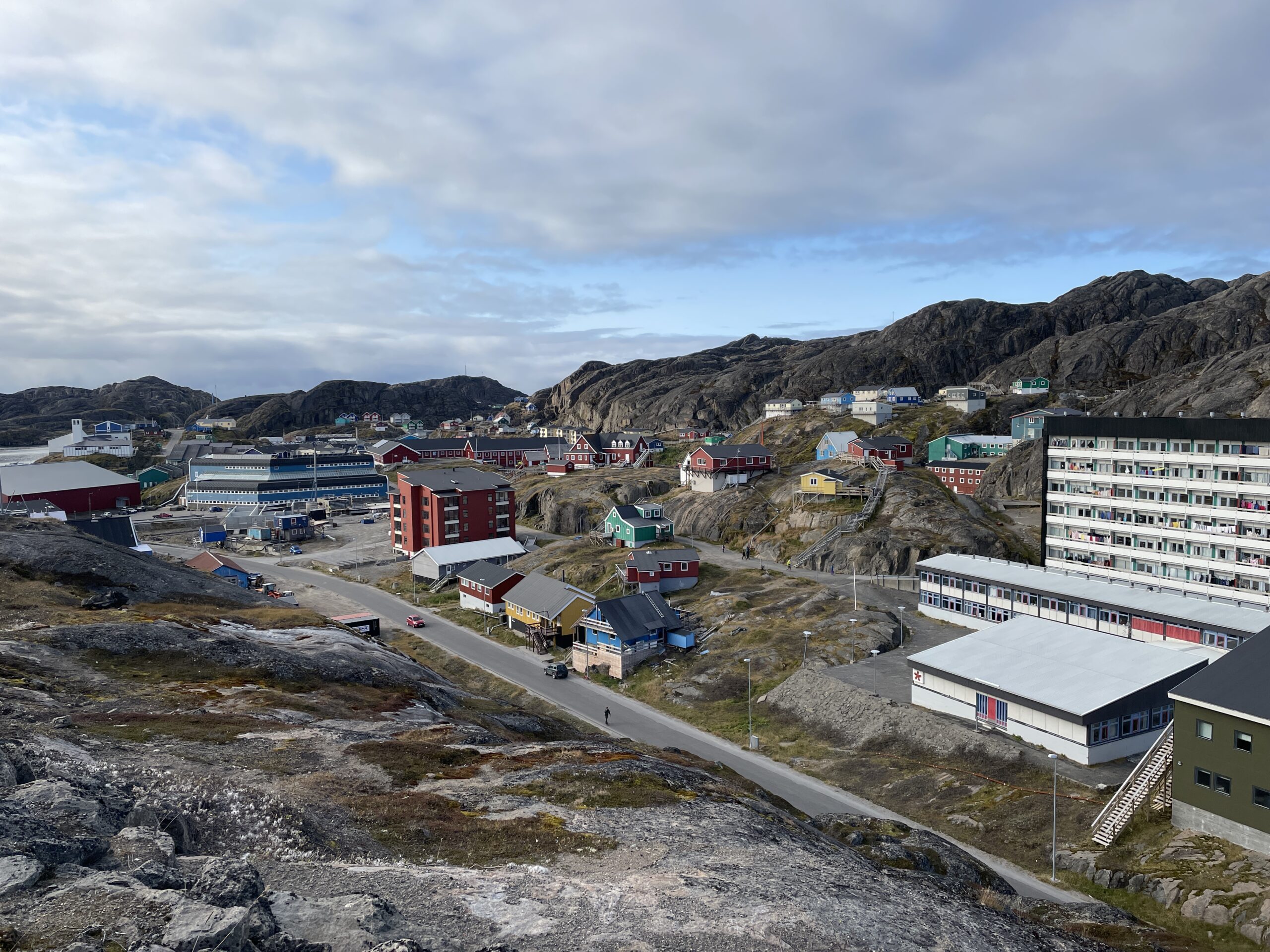 En frisk fanget laks fra brættet til fryseren.Nordlys mandag aften set fra køkken vinduet.Torsdag sov Vigga eftermiddagslur på hvalspottet, mens Alex nød udsigten.Nordlys torsdag aften set fra vores hoveddør.Udsigt ind over Maniitsoq fra fredagens løbetur.Den gamle kirkegård og museet under Vigga og Alex løbetur fredag.Fredag aften gik vi ud for at nyde nordlyset.Nordlyset lørdag aften.Vigga leger lidt efter frokosten på dagens vandretur til blomsterdalen.En havørn fløj tæt forbi, hvor vi holde pause.Havørnen.Udsigt ind i fjorden fra blomsterdalen.Vigga og Alex nyder solen.Vigga og Alex nyder pausen inden turen går tilbage til byen.Line på vej tilbage til Maniitsoq på lørdagens tur i fjeldet.På vej tilbage til byen faldt Vigga i søvn i bærestolen.Udsigten ned ad fejlede ikke noget.Fjeldet er flot i alle sine brune farver her i september.Fodboldbanen lørdag morgen, da Alex hentede morgen brød.En havørn fanger en måge til aftensmad.
