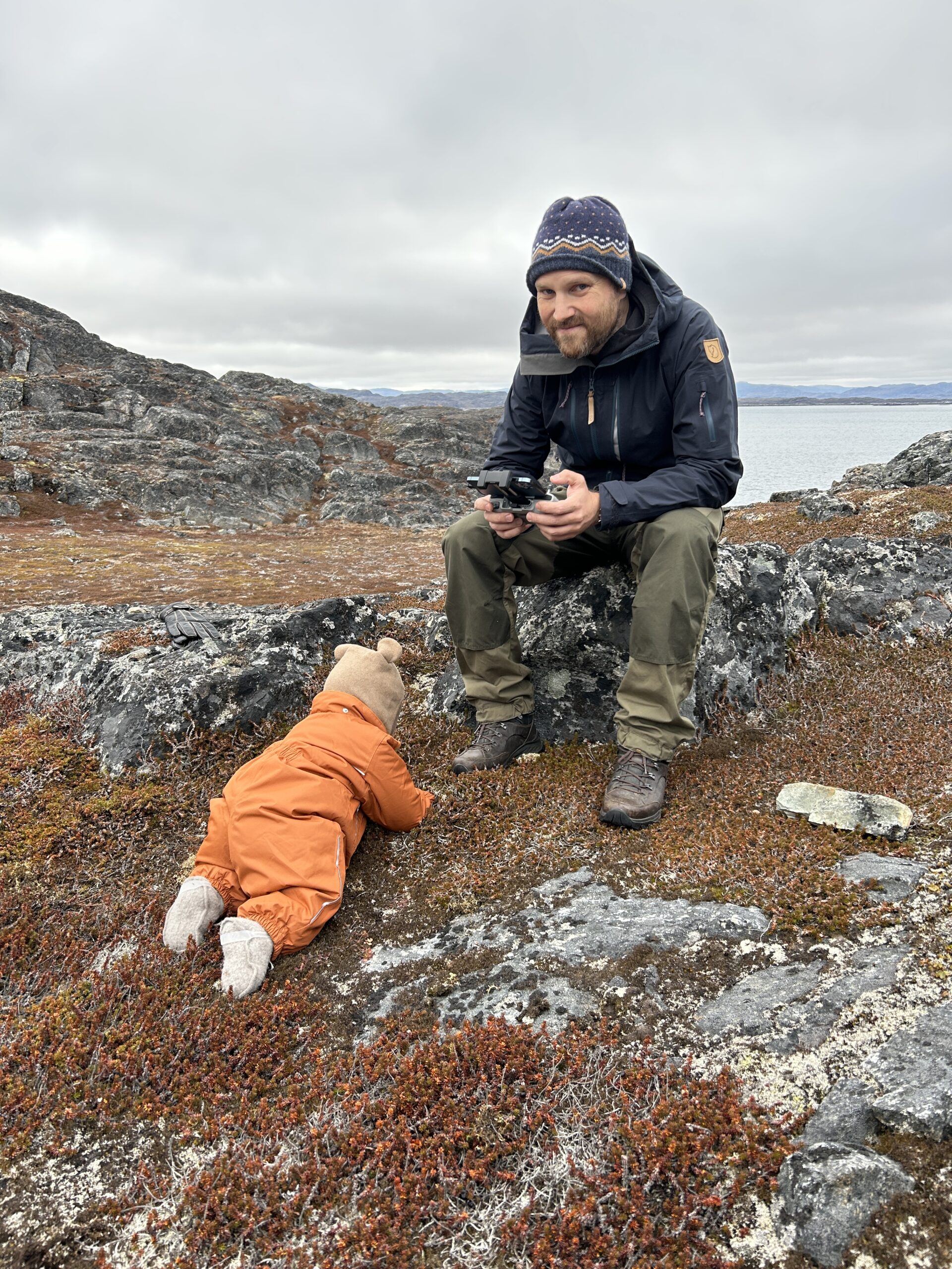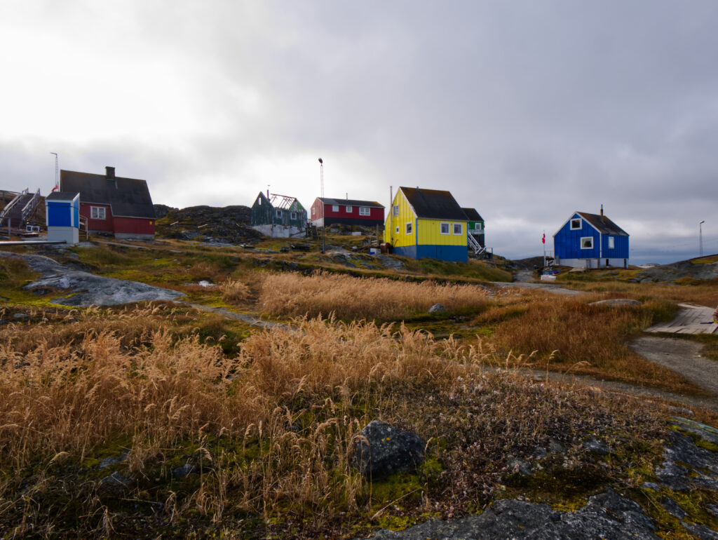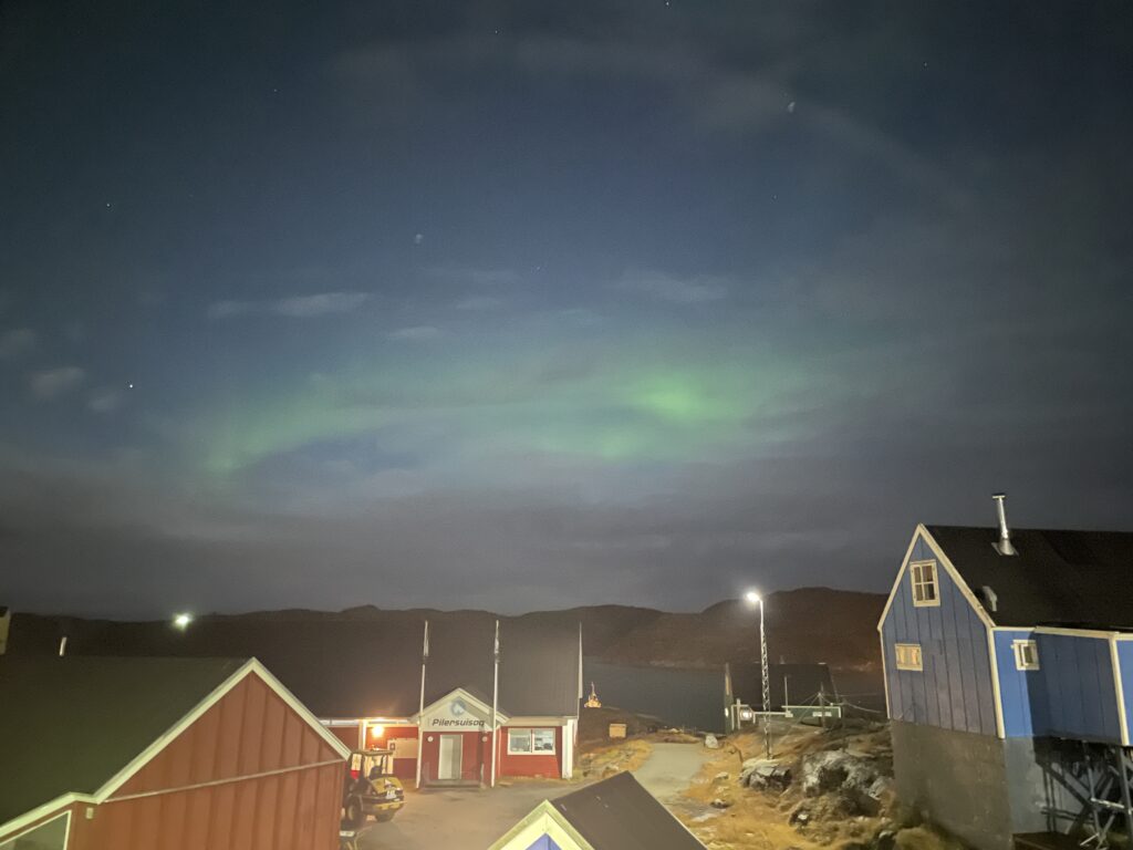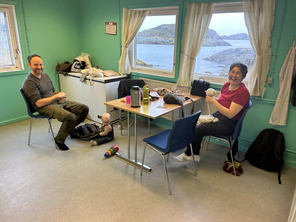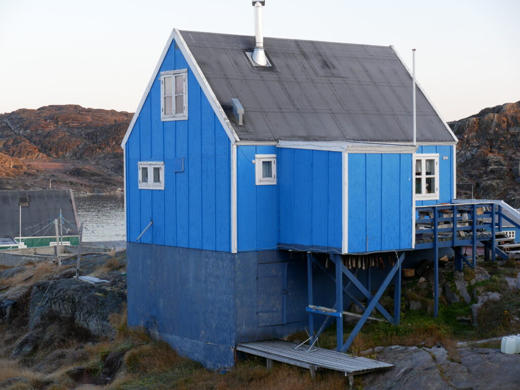 Vigga og Alex på båden på vej til Atammik, hvor Line skal på bygdebesøg.Et forladt hus på en fjeldtop i AtammikEn bugt og kirken på toppen.Små huse i forskellige farver.Alex på løbetur i fjeldet.Lines klinikassistent Marie og Alex slapper af på en fridag.Line købte et par fjeld-ørreder til aftensmad.Marie lærer Vigga at strikke.Lidt nordlys bag skyerne.Bygden Atammik set fra luften.Atammik er en lille bygde 80 km syd for Maniitsoq.Det forladte hus på toppen.Fodboldbanen.Havet omkring bygden er helt klart.Rim på tagene og morgensol.Et lille blåt hus.Der tørres fisk og kød udenfor.Den midlertidige klinik i Atammik.Line med turens sidste patient.Søndag var vi på tur i fjeldet.Vigga kravlede rundet.Mens Alex fløj en tur med dronen og tog billeder.Baglandet ved Atammik set fra luften.Atammik mellem hav og fjeld.Et kig ind i fjorden.Mange farver når man ser ned oppefra.Huse i mange forskellige farver.Flere huse i Atammik.