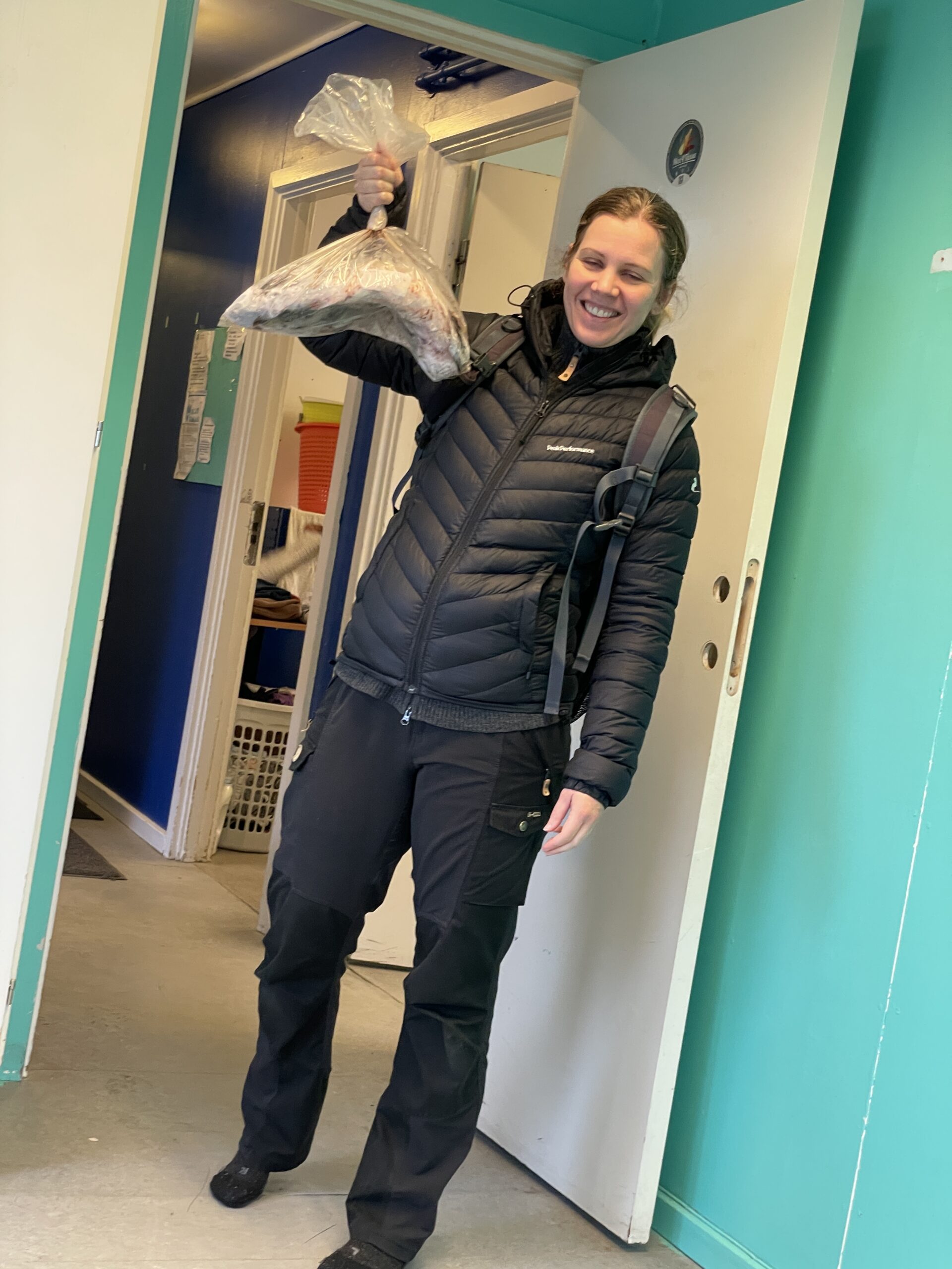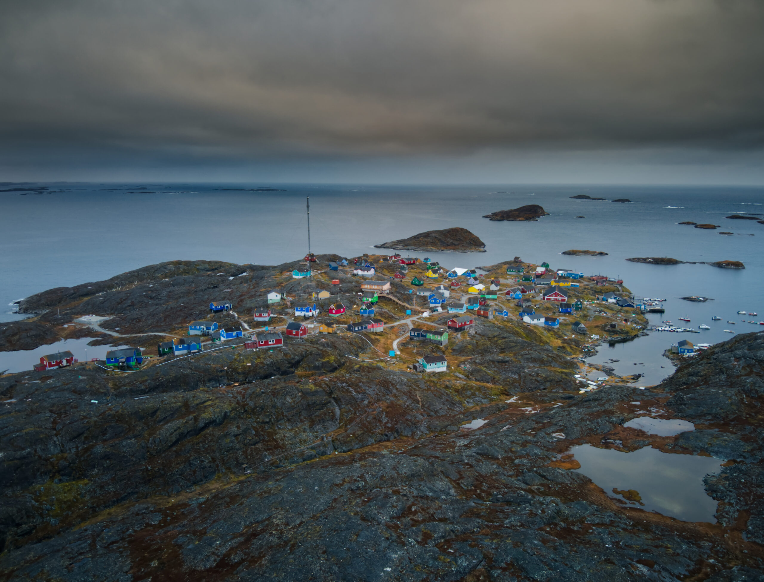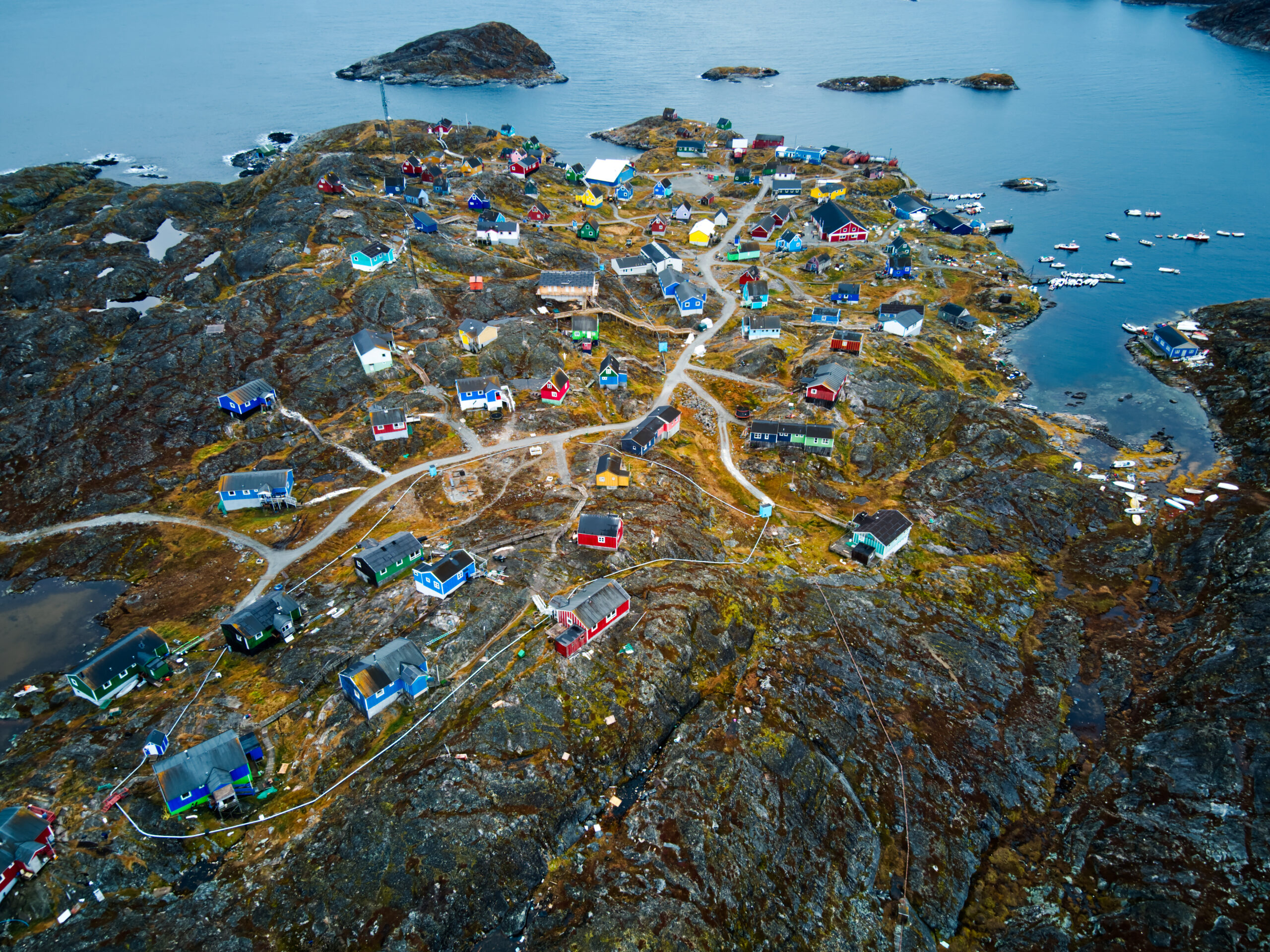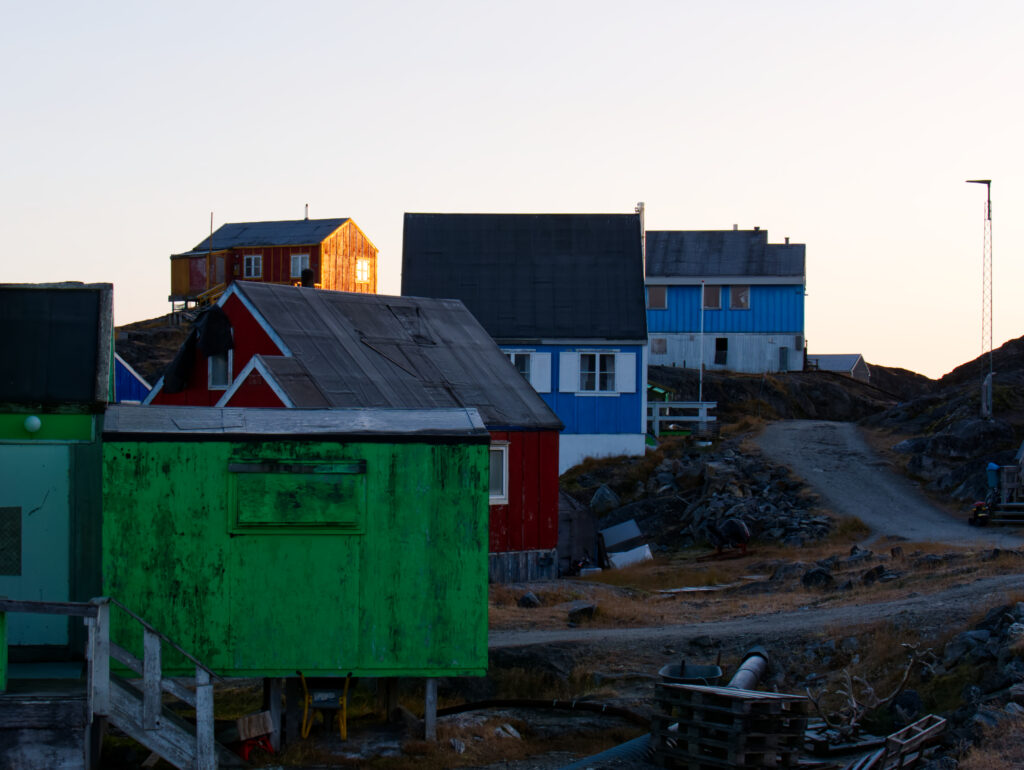 Vigga og Alex på båden på vej til Atammik, hvor Line skal på bygdebesøg.Et forladt hus på en fjeldtop i AtammikEn bugt og kirken på toppen.Små huse i forskellige farver.Alex på løbetur i fjeldet.Lines klinikassistent Marie og Alex slapper af på en fridag.Line købte et par fjeld-ørreder til aftensmad.Marie lærer Vigga at strikke.Lidt nordlys bag skyerne.Bygden Atammik set fra luften.Atammik er en lille bygde 80 km syd for Maniitsoq.Det forladte hus på toppen.Fodboldbanen.Havet omkring bygden er helt klart.Rim på tagene og morgensol.Et lille blåt hus.Der tørres fisk og kød udenfor.Den midlertidige klinik i Atammik.Line med turens sidste patient.Søndag var vi på tur i fjeldet.Vigga kravlede rundet.Mens Alex fløj en tur med dronen og tog billeder.Baglandet ved Atammik set fra luften.Atammik mellem hav og fjeld.Et kig ind i fjorden.Mange farver når man ser ned oppefra.Huse i mange forskellige farver.Flere huse i Atammik.