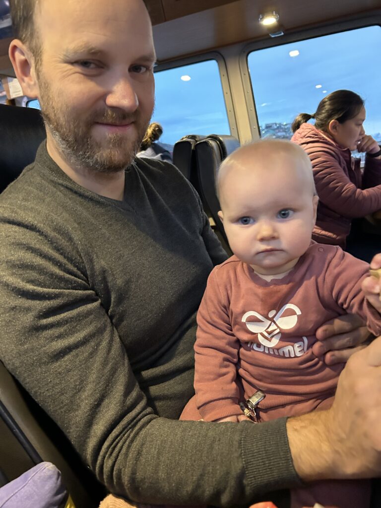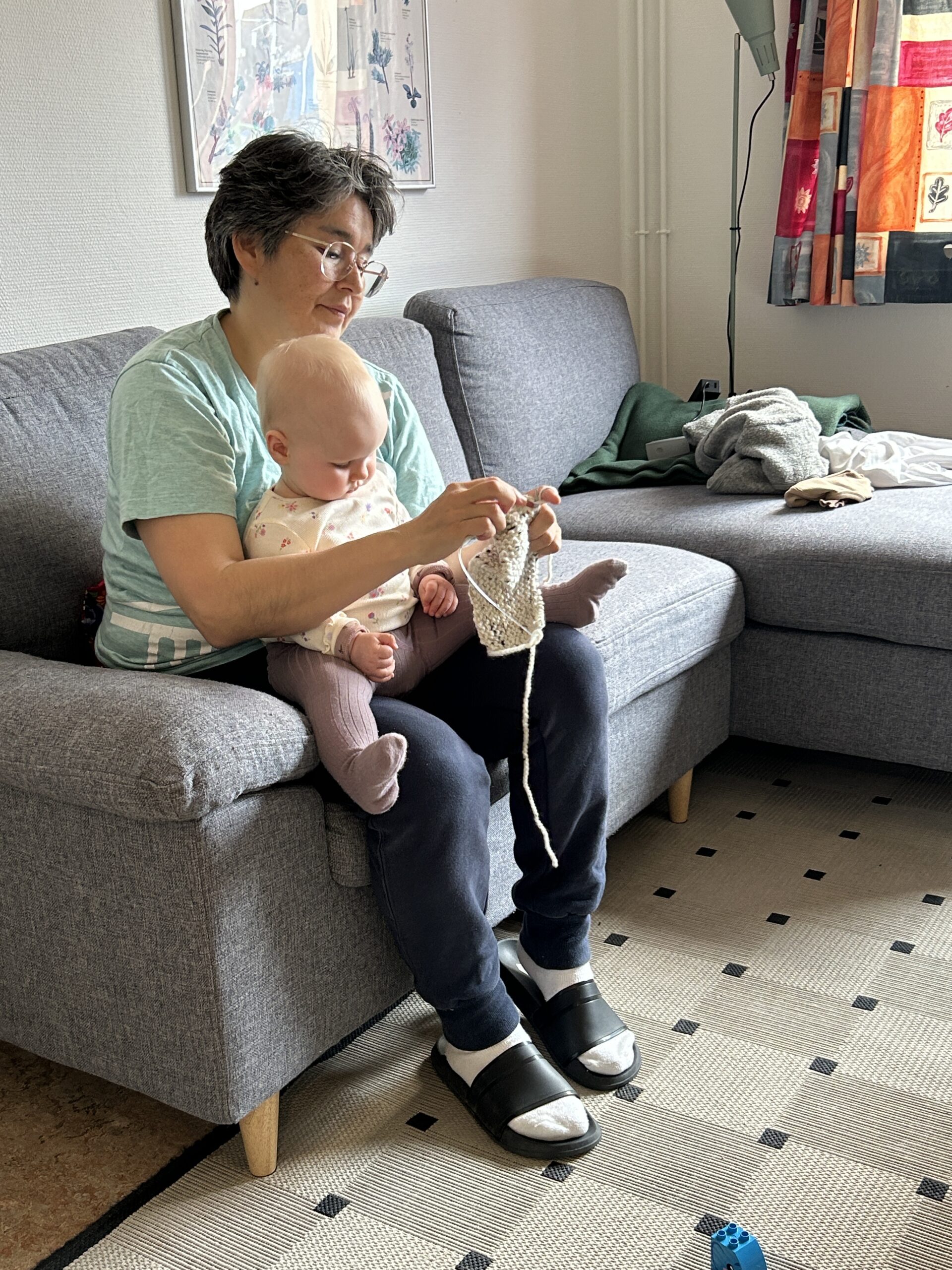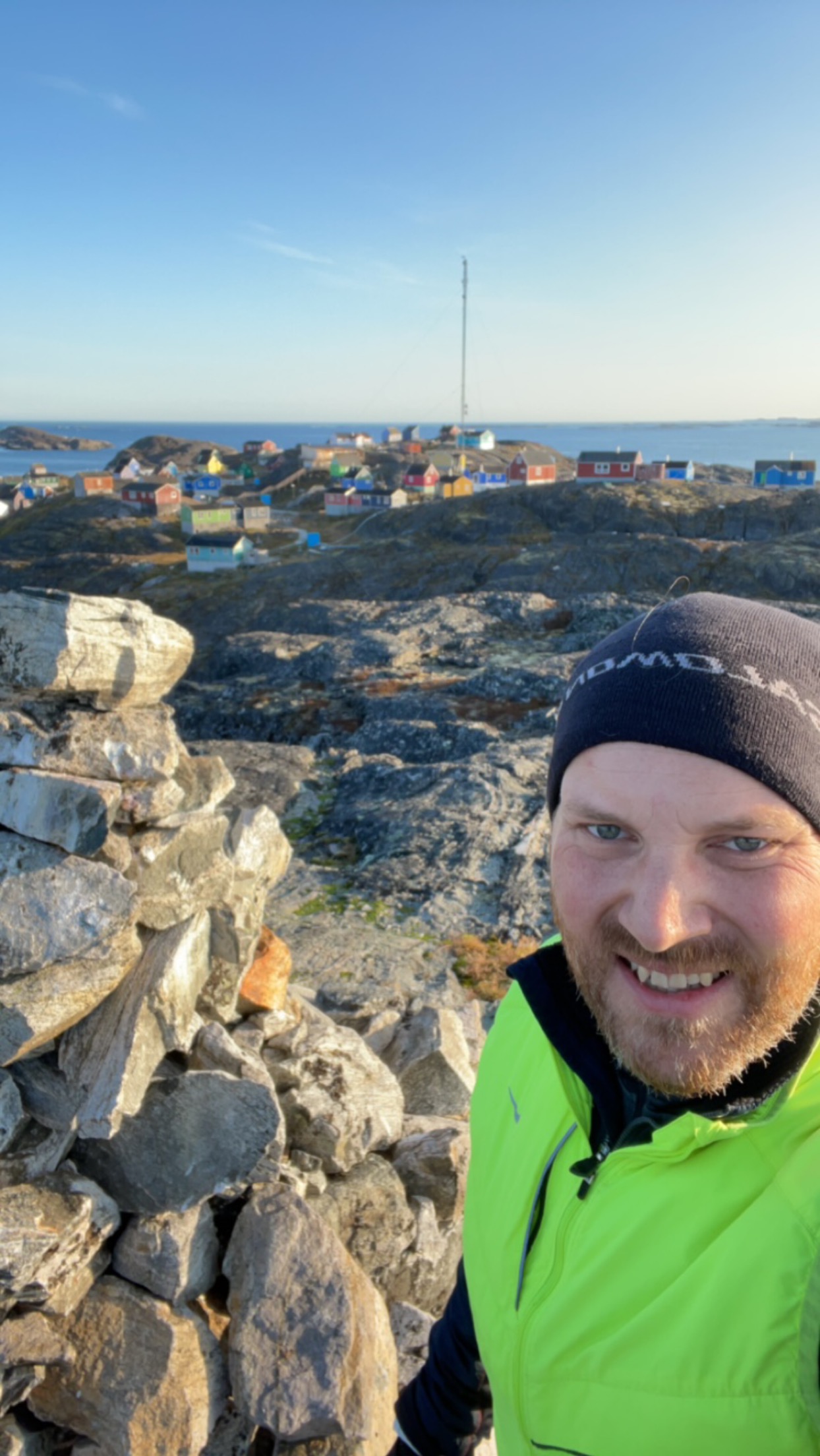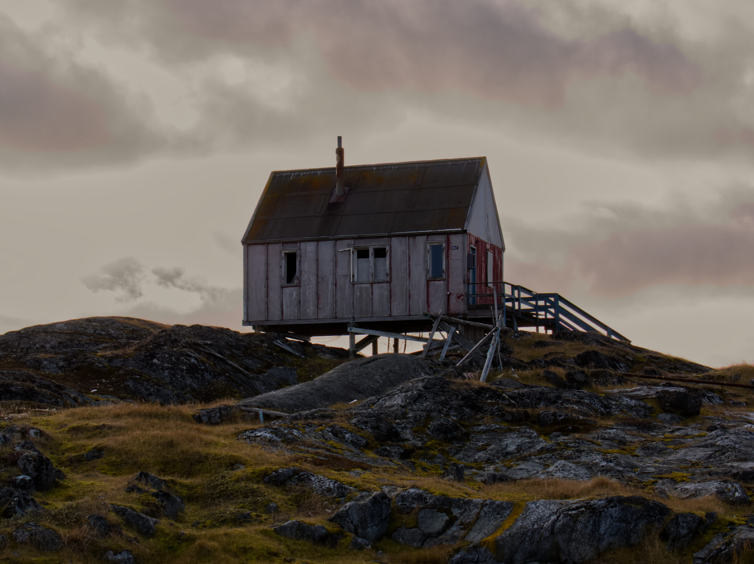 Vigga og Alex på båden på vej til Atammik, hvor Line skal på bygdebesøg.Et forladt hus på en fjeldtop i AtammikEn bugt og kirken på toppen.Små huse i forskellige farver.Alex på løbetur i fjeldet.Lines klinikassistent Marie og Alex slapper af på en fridag.Line købte et par fjeld-ørreder til aftensmad.Marie lærer Vigga at strikke.Lidt nordlys bag skyerne.Bygden Atammik set fra luften.Atammik er en lille bygde 80 km syd for Maniitsoq.Det forladte hus på toppen.Fodboldbanen.Havet omkring bygden er helt klart.Rim på tagene og morgensol.Et lille blåt hus.Der tørres fisk og kød udenfor.Den midlertidige klinik i Atammik.Line med turens sidste patient.Søndag var vi på tur i fjeldet.Vigga kravlede rundet.Mens Alex fløj en tur med dronen og tog billeder.Baglandet ved Atammik set fra luften.Atammik mellem hav og fjeld.Et kig ind i fjorden.Mange farver når man ser ned oppefra.Huse i mange forskellige farver.Flere huse i Atammik.
