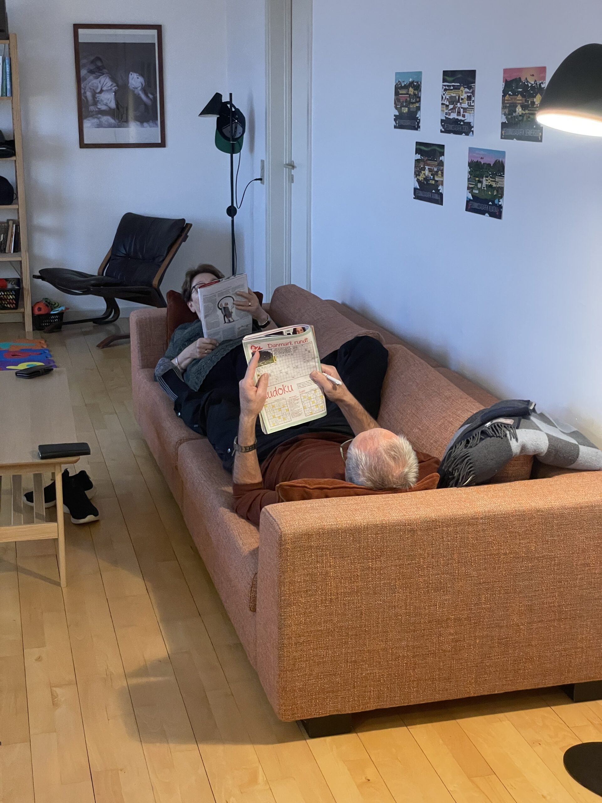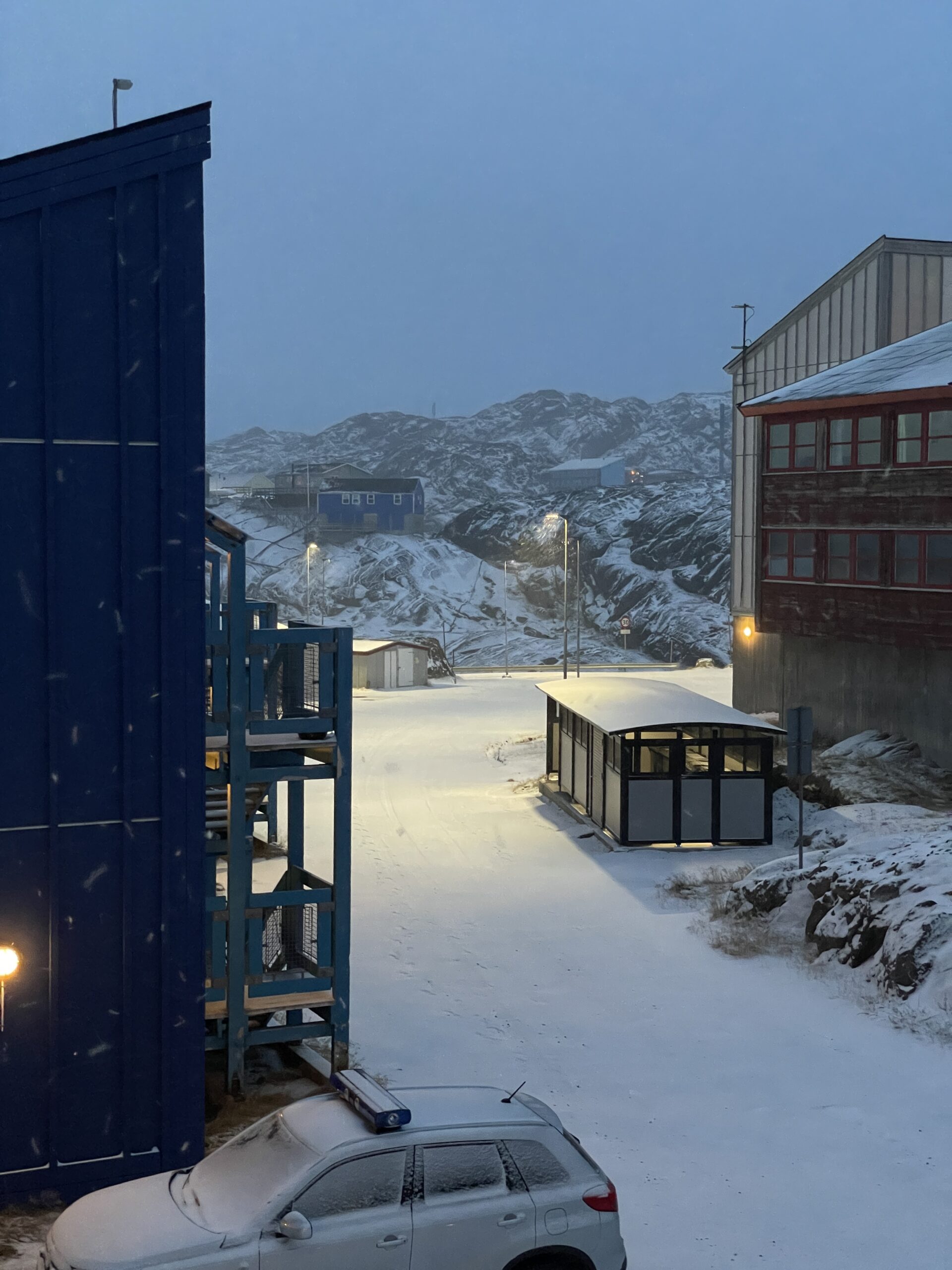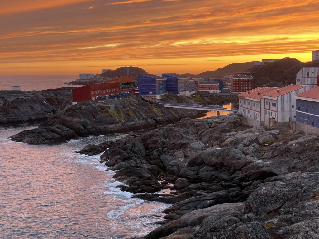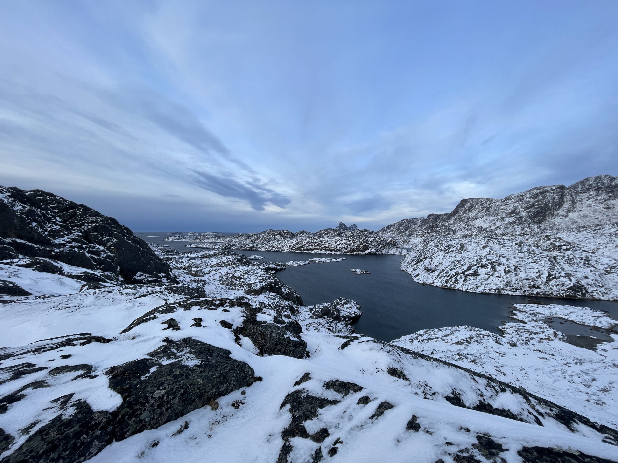 Mandag d. 30. oktober blev Vigga 10 månederSolopgangene er virkeligt flotte for tiden.De er lidt forskellige hver eneste dag.Et lille kig ind i en af de mange bugter i Maniitsoq.Og endnu en solopgangSolnedgangene kan også noget.Torsdag landede Farmor og Farfar i Maniitsoq.Lørdag kom sneen retur efter en uge som havde flere dage med 7-9 graders varme.Der blev leget og læst.Vigga viser lige Farmor sin fine bog.Der blev også tid til lidt afslapning.Søndag stod den på vandretur i fjeldet.Familie billede i fjeldet.
