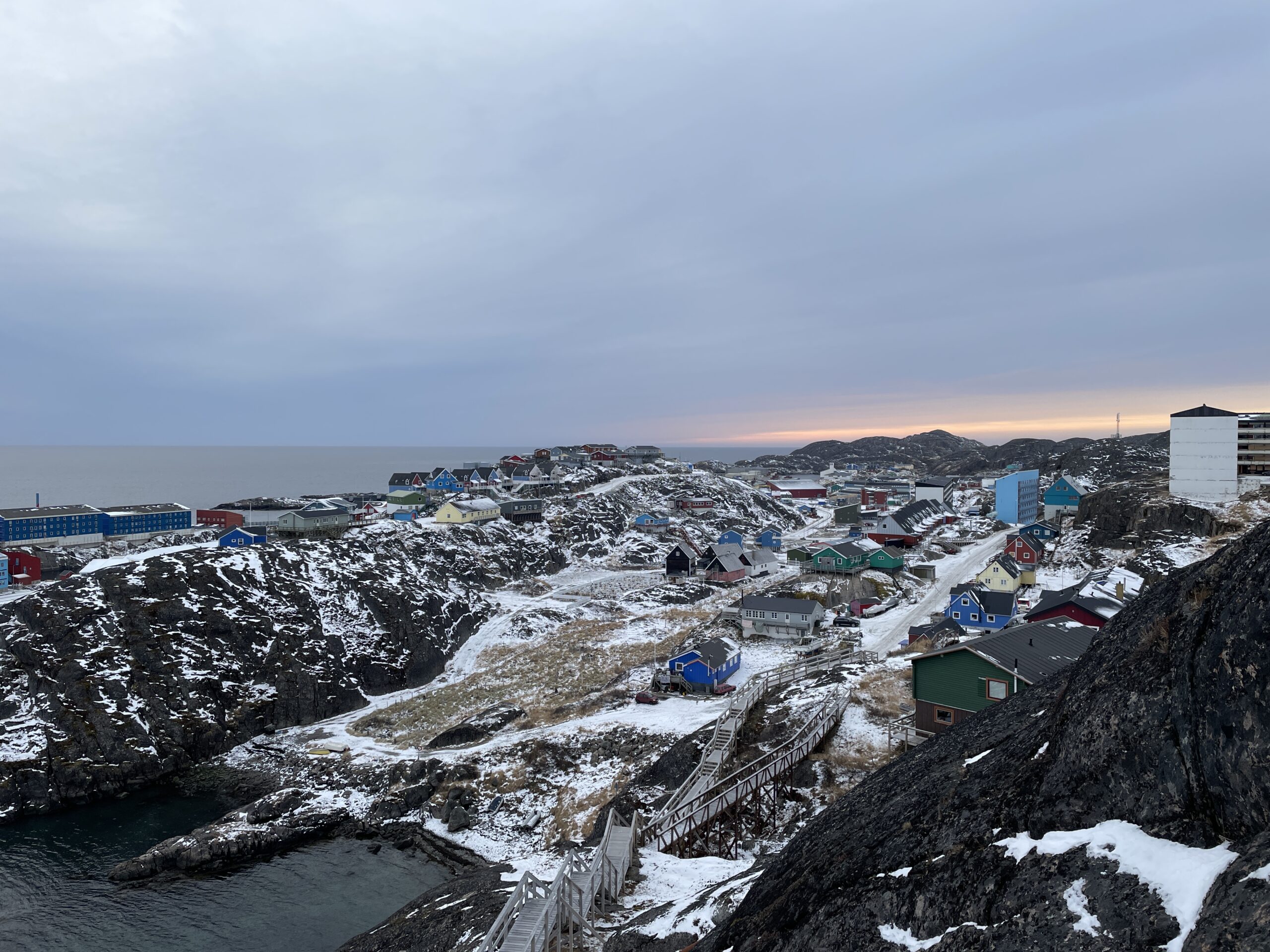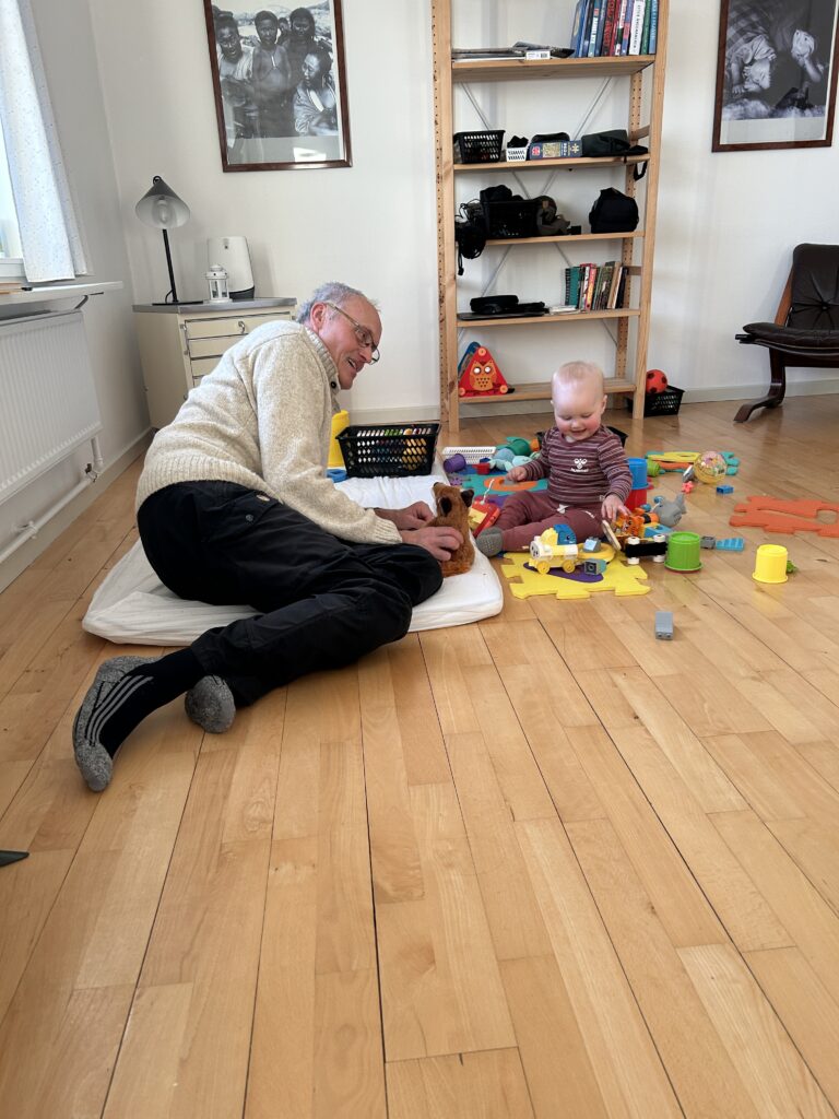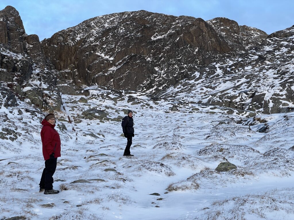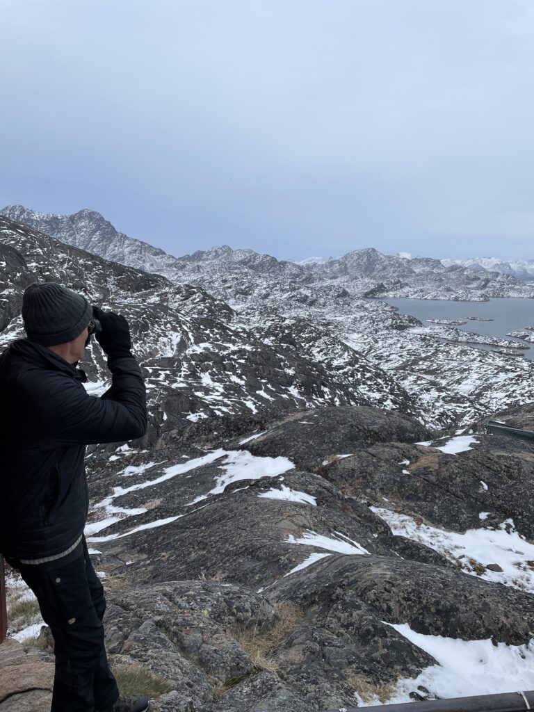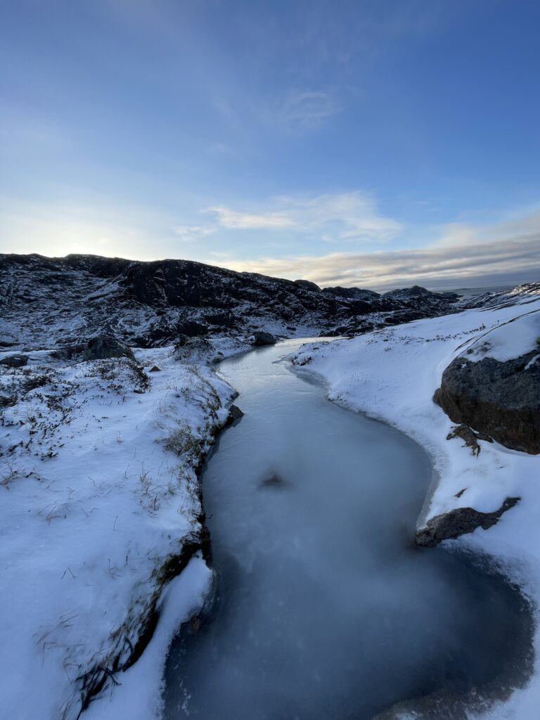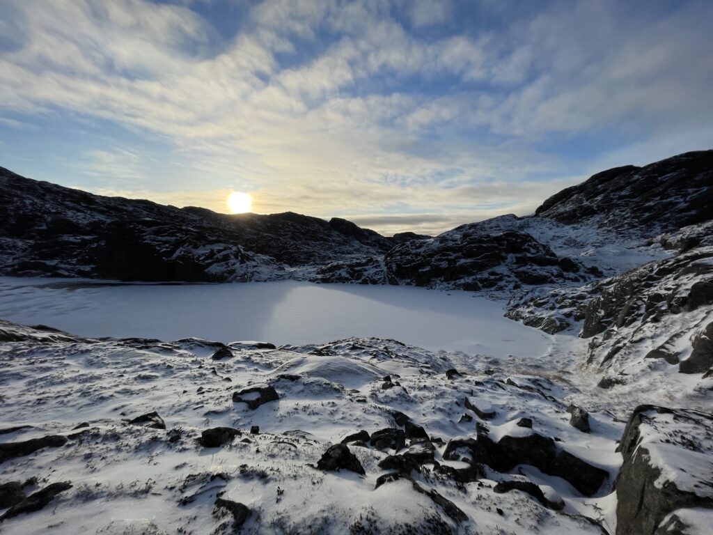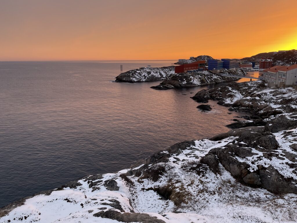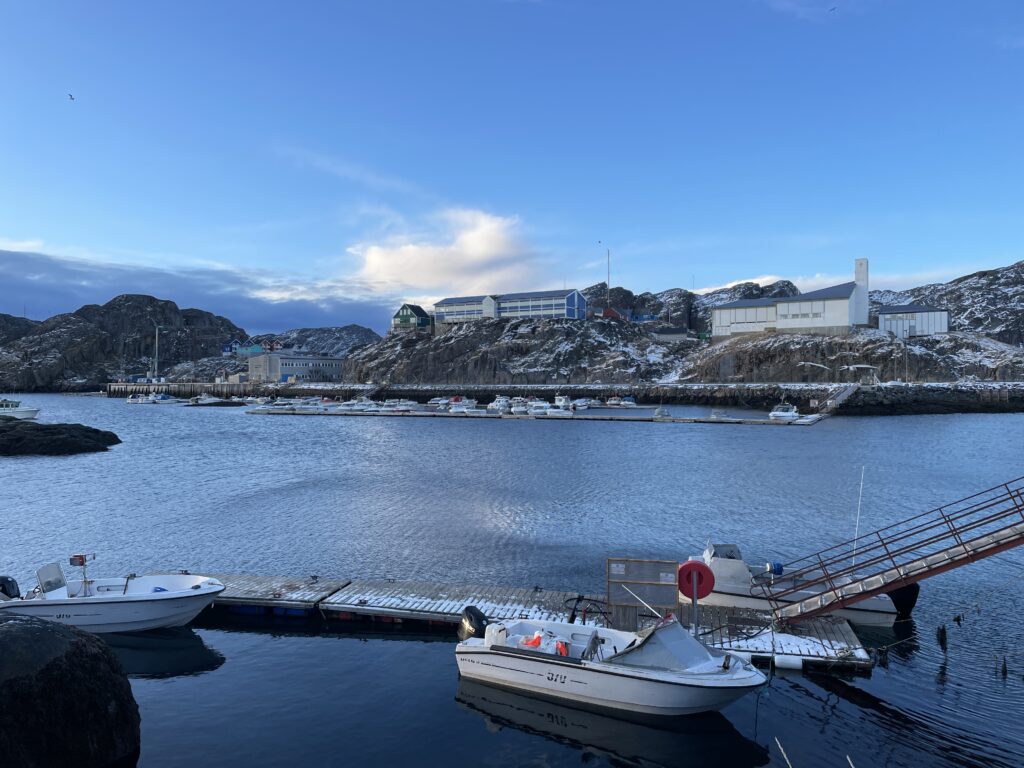 Vigga læser blade med Farmor og FarfarMandag aften var der tændt for et flot nordlys.Nordlyset startede tidligt, så Vigga var med Farmor og Farfar ude at se nordlys.Familien Møberg under nordlyset.Mere nordlys.Tirsdag gik Herluf og Alex til toppen af “Eiffeltårnet”Herluf nyder udsigten.Det var en lidt rå kold dag på toppen.Alex og Vigga på vej hjem fra en lille gå tur med Farmor og Farfar.Flotte farver lige omkring solnedgang.Herluf med sin anden torsk.Onsdag aften stod den på sæl, denne gang som wienersnitzel.Lidt panering og sælen ligner næsten en kalvesnitzel.Paneret stegt sæl smager faktisk ret godt.Vores faste hval uden for vores vinduer er taget videre. Til gengæld kommer der mange havørne forbi.Havørnene er ikke så gode venner med ravnene.En tur på hotellet til aftensmad og grøndlandsk kaffe.Nordlys ved hvalspottet.Fredag var vi alene på en længere vandretur i fjeldet.Line i det flotte vejr.Udsigten ind i fjorderne.En flot frosset bæk.Lidt mere nordlys fredag aften.Lørdag var Anni, Herluf og Alex på vandretur i blomsterdalen.En frosset sø i fjeldet på vej til blomsterdalen.Et lille frosset vandfald.Farfar og Vigga leger på gulvet.Så er der bid igen.Herluf skulle lige nå at fange en torsk mere inden turen går mod Danmark.Det blev til en flot torsk på 64 cm.Udsigt ind over havnen med kirken og hotellet på toppen.Vi siger tak for et dejligt besøg til Farmor og Farfar.