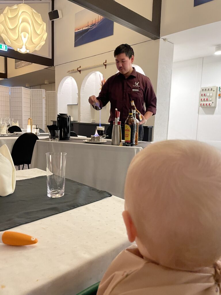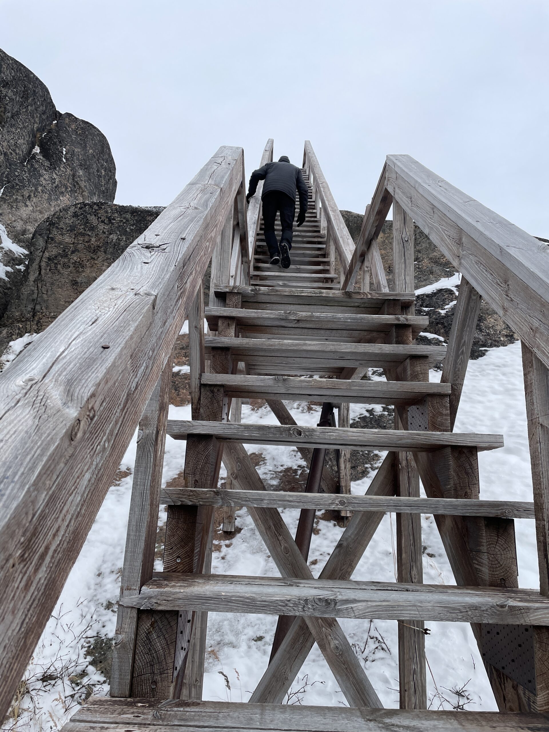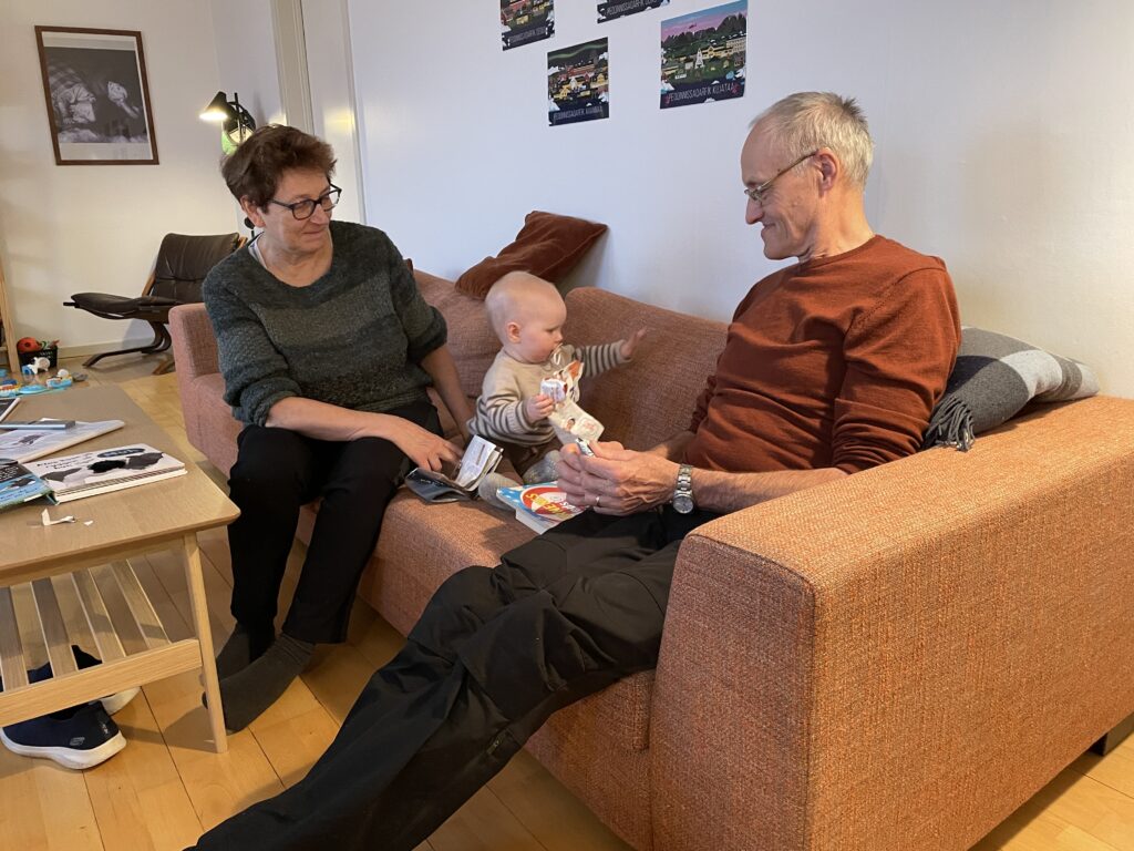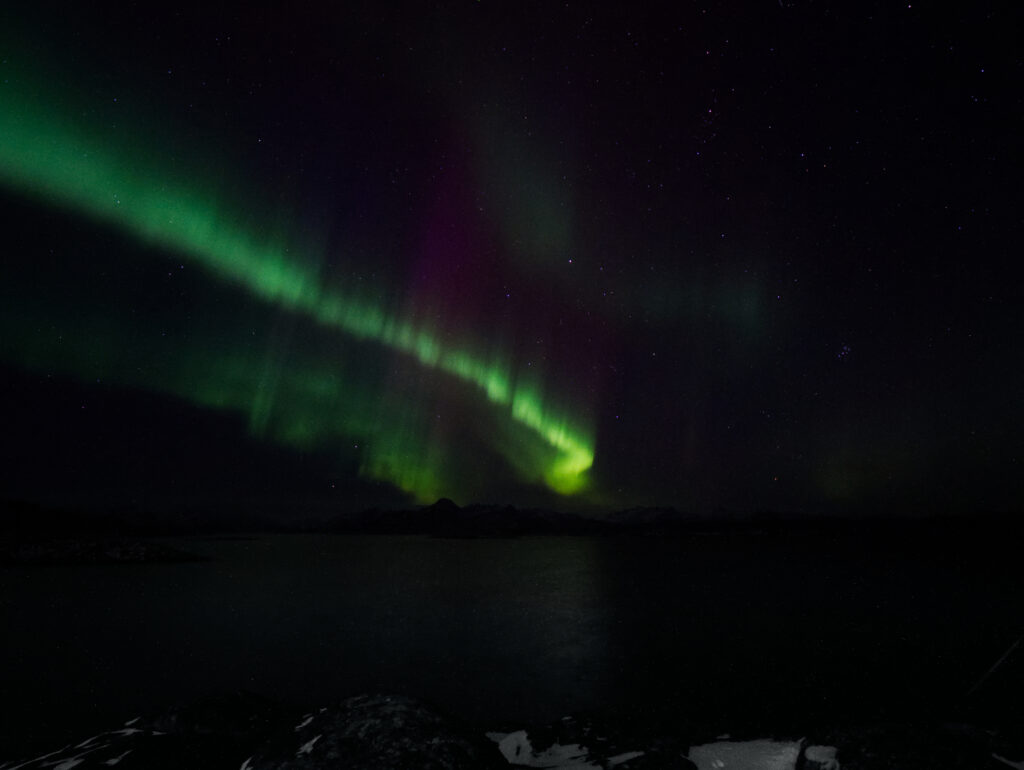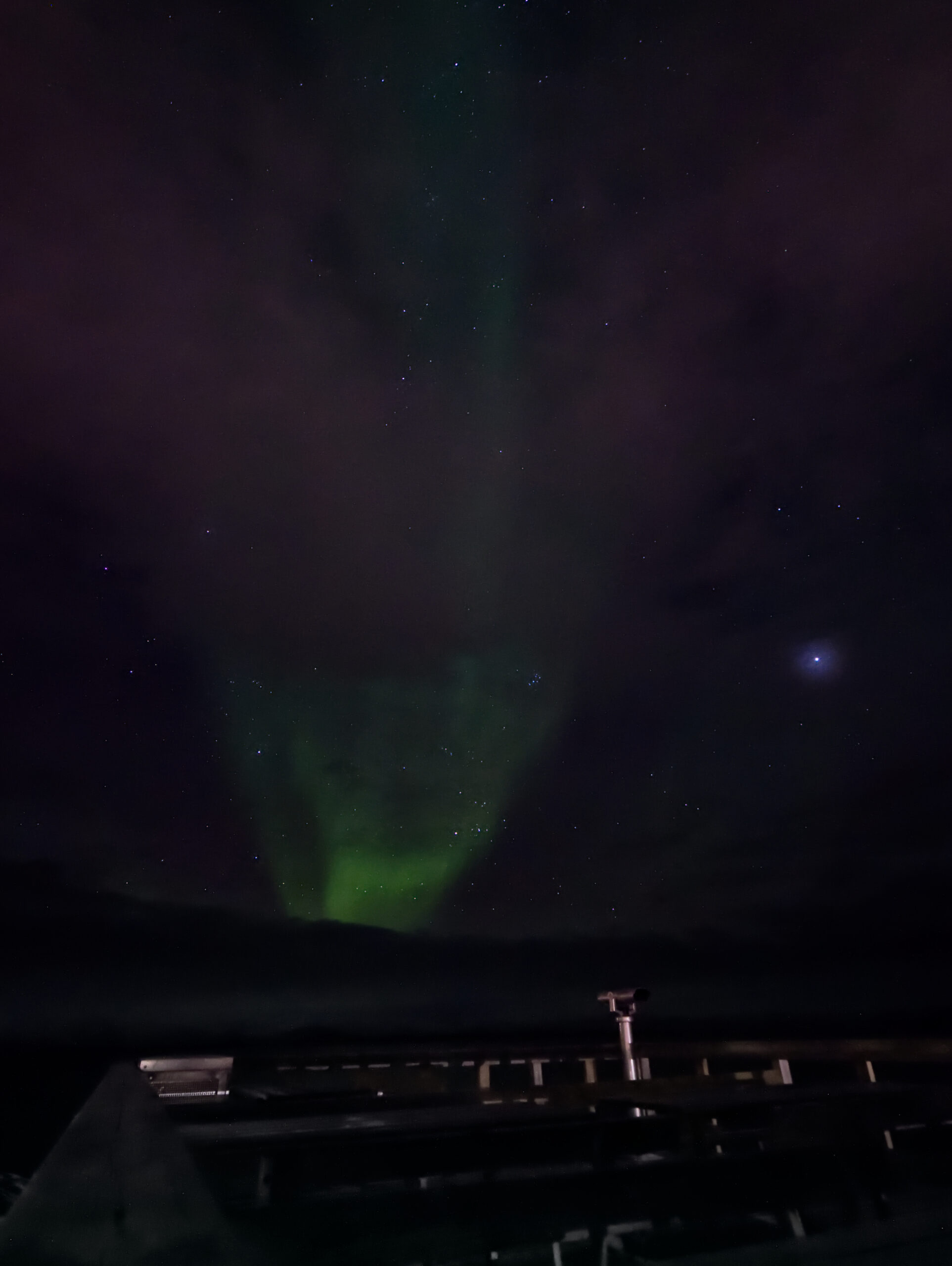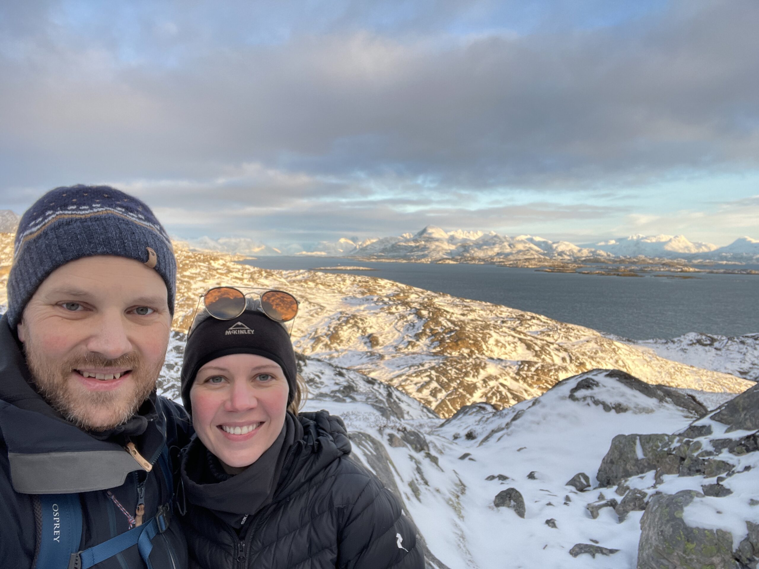 Vigga læser blade med Farmor og FarfarMandag aften var der tændt for et flot nordlys.Nordlyset startede tidligt, så Vigga var med Farmor og Farfar ude at se nordlys.Familien Møberg under nordlyset.Mere nordlys.Tirsdag gik Herluf og Alex til toppen af “Eiffeltårnet”Herluf nyder udsigten.Det var en lidt rå kold dag på toppen.Alex og Vigga på vej hjem fra en lille gå tur med Farmor og Farfar.Flotte farver lige omkring solnedgang.Herluf med sin anden torsk.Onsdag aften stod den på sæl, denne gang som wienersnitzel.Lidt panering og sælen ligner næsten en kalvesnitzel.Paneret stegt sæl smager faktisk ret godt.Vores faste hval uden for vores vinduer er taget videre. Til gengæld kommer der mange havørne forbi.Havørnene er ikke så gode venner med ravnene.En tur på hotellet til aftensmad og grøndlandsk kaffe.Nordlys ved hvalspottet.Fredag var vi alene på en længere vandretur i fjeldet.Line i det flotte vejr.Udsigten ind i fjorderne.En flot frosset bæk.Lidt mere nordlys fredag aften.Lørdag var Anni, Herluf og Alex på vandretur i blomsterdalen.En frosset sø i fjeldet på vej til blomsterdalen.Et lille frosset vandfald.Farfar og Vigga leger på gulvet.Så er der bid igen.Herluf skulle lige nå at fange en torsk mere inden turen går mod Danmark.Det blev til en flot torsk på 64 cm.Udsigt ind over havnen med kirken og hotellet på toppen.Vi siger tak for et dejligt besøg til Farmor og Farfar.