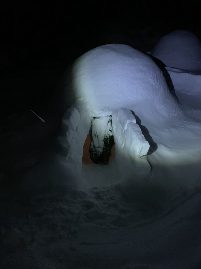 Igloerne lyser op når en lygte er tændt inde i dem.