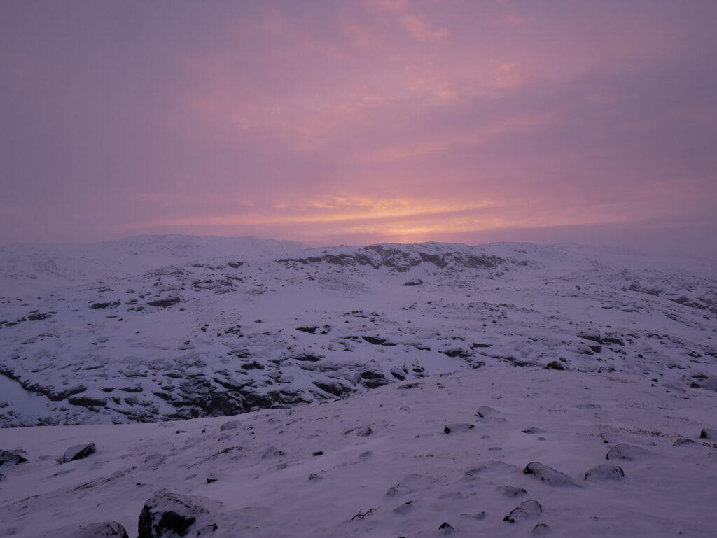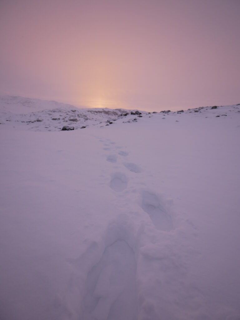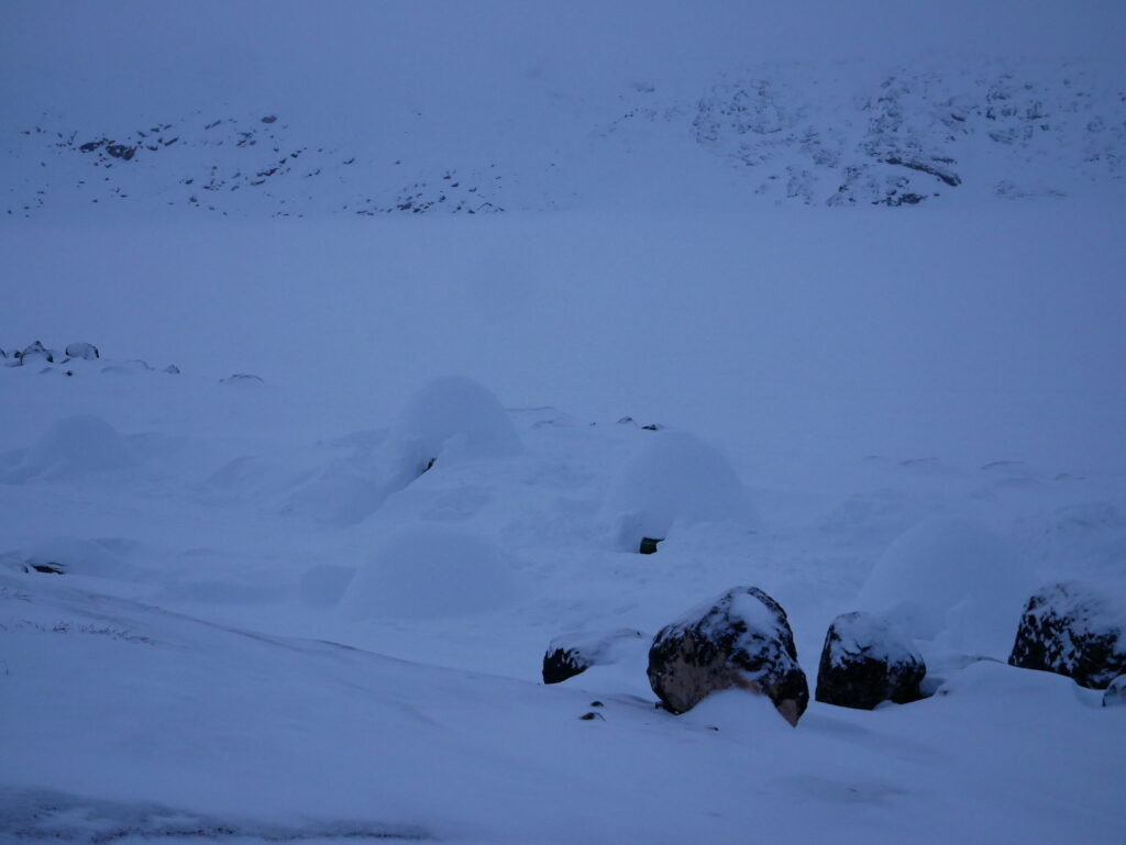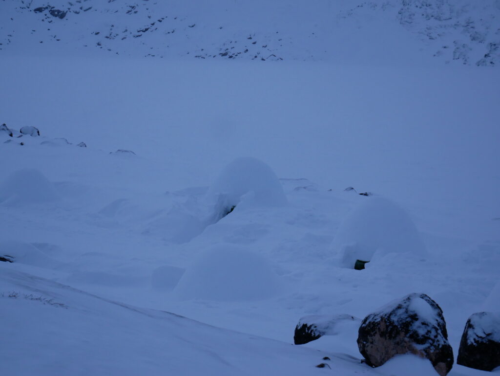 Udsigt over hytten ved Iglo Lodge, hytten var uden strøm, vand og Wifi.